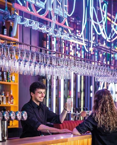 look out for somewhere to catch the game on the big screen, in which case their destination should be the ‘fan zone’ NINE’s Restaurant & Sports Bar (p.93). Named after the player number of Polish footballer and co-owner, Robert Lewandowski, the restaurant section of this establishment has an international menu developed around the Polish captain’s proclivity for a healthy lifestyle, which may be a key word for more serious diners. Executive Lounge (p.92) perfectly balances class with a sophisticated menu of cocktails, and tapas, whilst making itself an incredibly attractive option for private events. Additionally, Baila Show & Dining (p.91) delivers an exclusive ‘dinner and a show’ in the form of delicious Latin American dishes with eye-catching entertainment! A hop, skip and jump through the rest of the Browary lineup reveals more of the diverse smorgasbord and quality of what’s on offer here. Also enjoy excellent food and service in Gastronomja (modern Polish and European) Mykonos (Greek), Olivos (Mediterranean), Sobremesa Tapas Bar (Spanish), Munja (Balkan) and Bombaj Masala Wola (Indian). In addition to proper meals, there are several gourmet delicatessens, bakeries, cafes and sweet shops, namely: Crazy Butcher, Piccola Italia deli, Le Paradox wine bar/shop, Good Lood ice cream (the best in PL), Dobro & Dobro coffeeshop, Vita Cafe, Deseo Patisserie & Chocolaterie, and the excellent Bakery Browary Warszawskie with its artisanal bread and amazing pastries (that’s a ‘proper meal’ to us). Word on the street is that there might be more culinary delights joining the Browary family in 2023, so let’s stay tuned for that! Perhaps the coolest thing about Browary’s bounty of gastronomy points is not just their relative proximity to each other, but the way they often work as a cooperative. Since the complex first opened, gastro tenants here have regularly participated in special projects and promotions ranging from themed menus and culinary competitions to food festivals and other collective events that bring them together in the neighbourhood’s shared spaces!