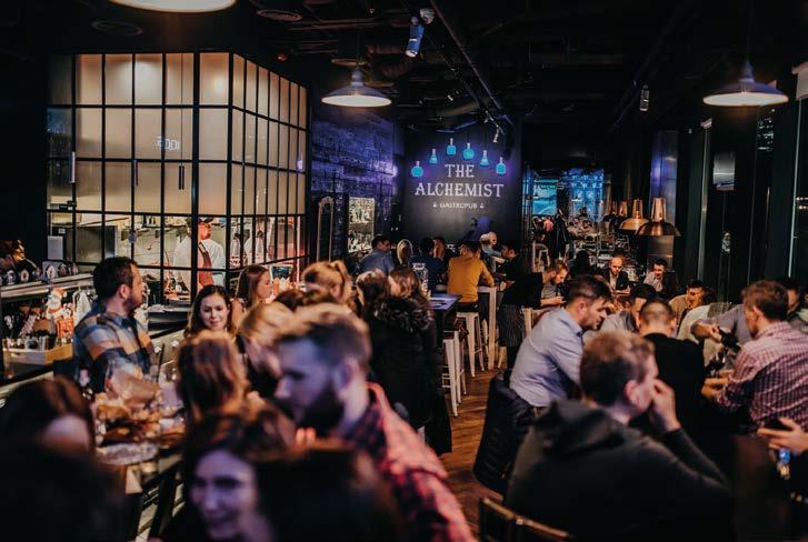 Iin this famous city centre spot INTERNATIONAL CUISINE ALCHEMY COCKTAILS DELICIOUS STEAKS BEER WALL a local Party like