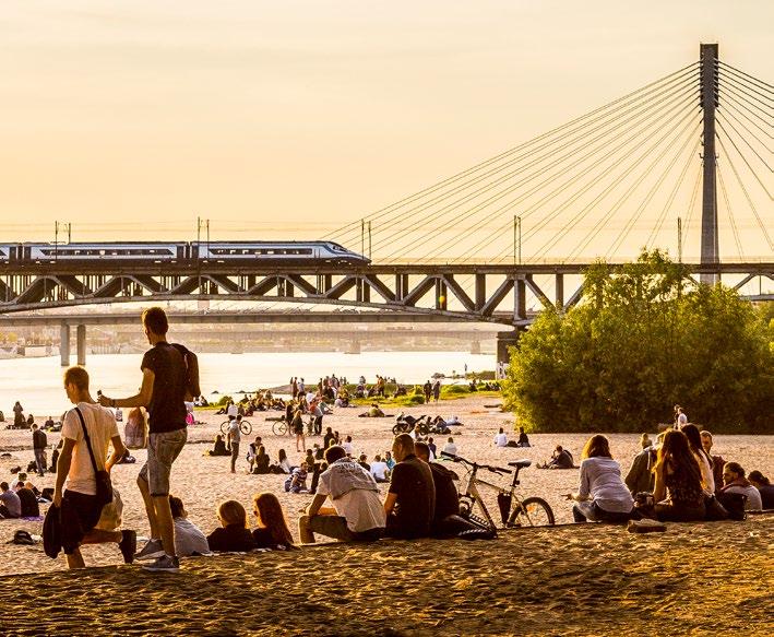 Perhaps the most characteristic thing about Warsaw’s riverside is the striking dichotomy between its left and right banks. While the left bank is more sanitised, developed and urbane, the right bank has been left largely untouched and resembles a wooded nature preserve. The best way to explore the full breadth of Warsaw’s waterfront is by getting on a bicycle (see p.19) and using the city’s many lovely riverside cycling paths and bridges. You can also take advantage of the city’s free ferry service, which provides a more scenic way to get across the river. Both sides have plenty to offer in terms of relaxation, exercise and entertainment, and here we list the highlights. Whether you’re looking for an escape from the noise and crowds of the capital, or the most happening party in town - you’ll find it on the riverside!