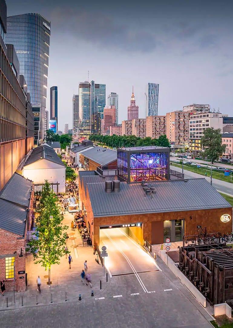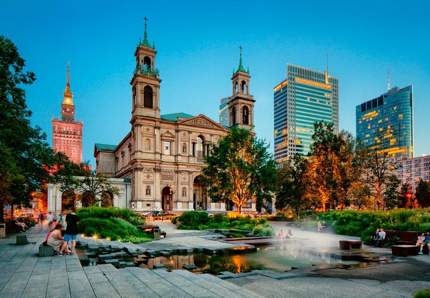 Known locally as ‘Śródmieście,’ Warsaw’s City Centre isn’t exactly a district (it comprises several, actually), but more of a catch-all term for the downtown area. Definitions vary, but generally, you know it when you’re in it - wide streets, monumental buildings, billboards, busy crosswalks and little to stand in the way of progress. It’s the modern, fast-paced, forwardlooking part of the city radiating out from the Palace of Culture & Science, and it’s here that you’ll find the majority of the city’s hotels, restaurants and bars, but also government buildings, skyscrapers and places of commerce - the dynamic heart of the contemporary capital.