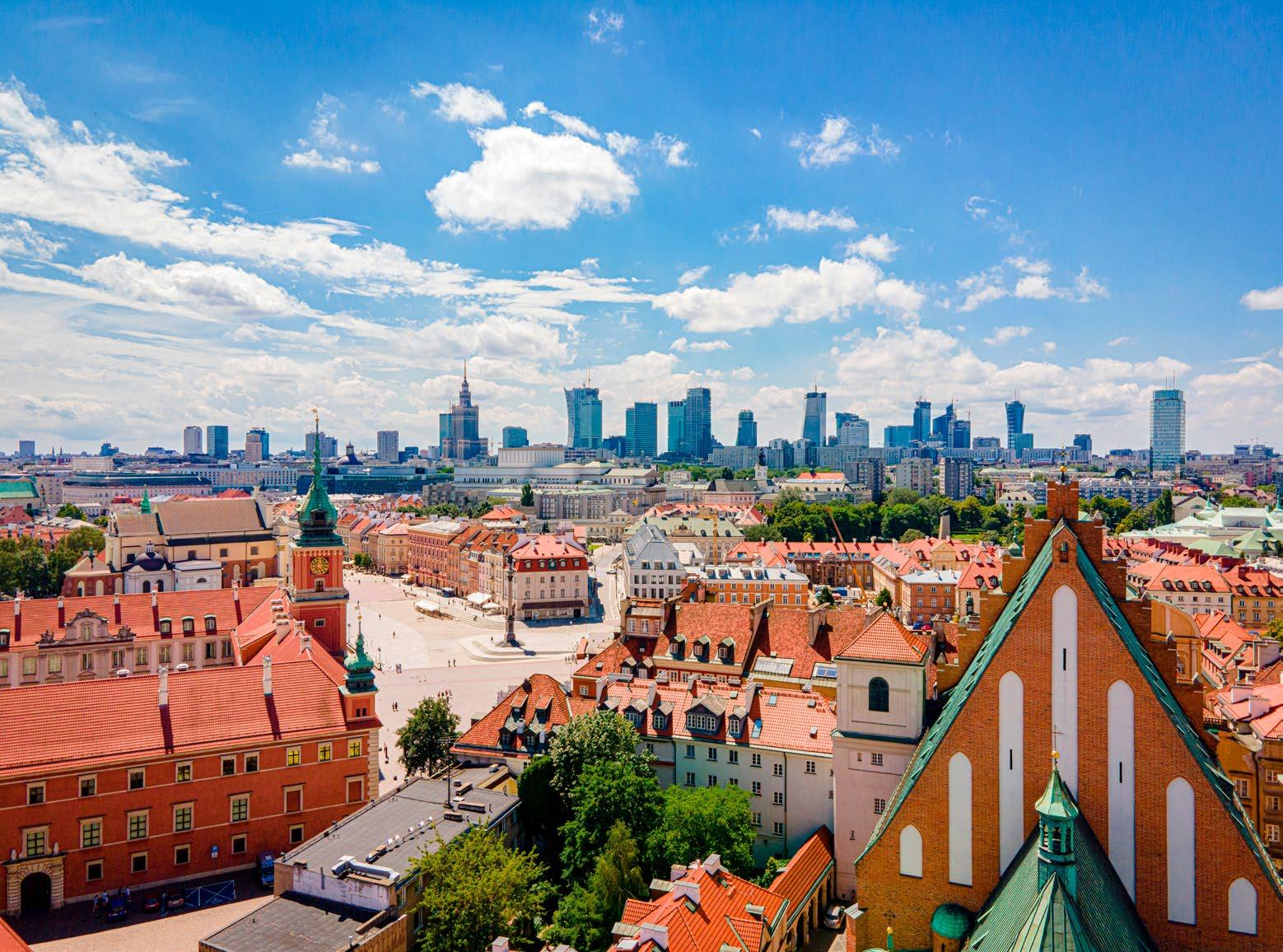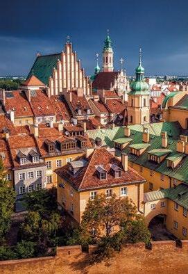 The rooftops of Warsaw Old Town (p.32). The city’s historic centre was 85% destroyed during WWII. After restoration, it became a UNESCO World Heritage Site in 1980.