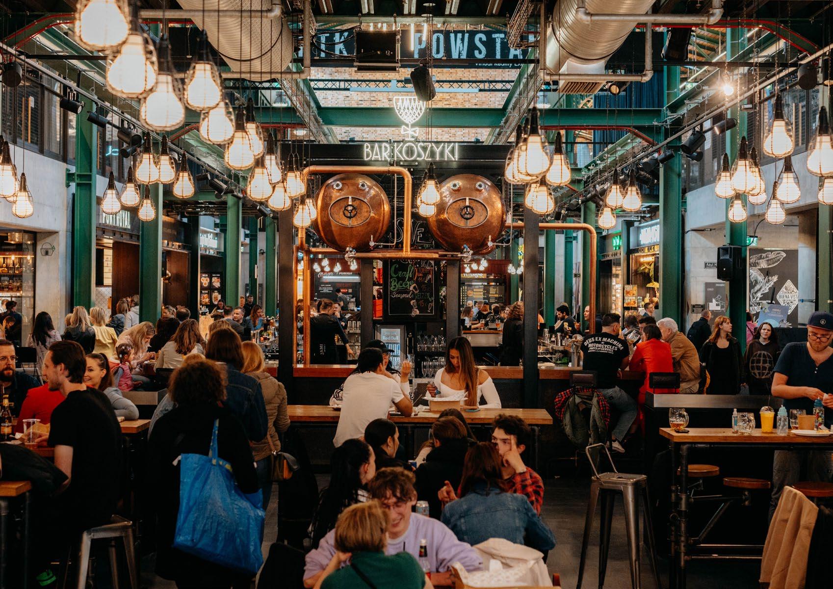 The popularity of street food and fast gastro concepts has led to an explosion of food markets and indoor dining halls in Warsaw, offering dozens of diverse eating options. Not only a place to slay your hunger, these modern food markets are also trendsetting urban social spaces, featuring bars and hosting events.