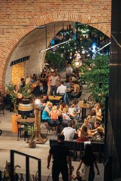 When developers began repurposing the space for an entertainment, food and shopping center – which opened in 2018 – they leaned into the existing architecture, highlighting it with contemporary industrial elements. Now, among the 19th century buildings, you’ll find sleek glass structures, string lights and pops of greenery that underscore the beauty of the original space.