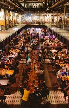 Food Hall wyróżniony licznymi nagrodami z klimatyczną postindustrialną przestrzenią, muzyką na żywo, 3 barami aż 17 różnymi kuchniami z całego świata.