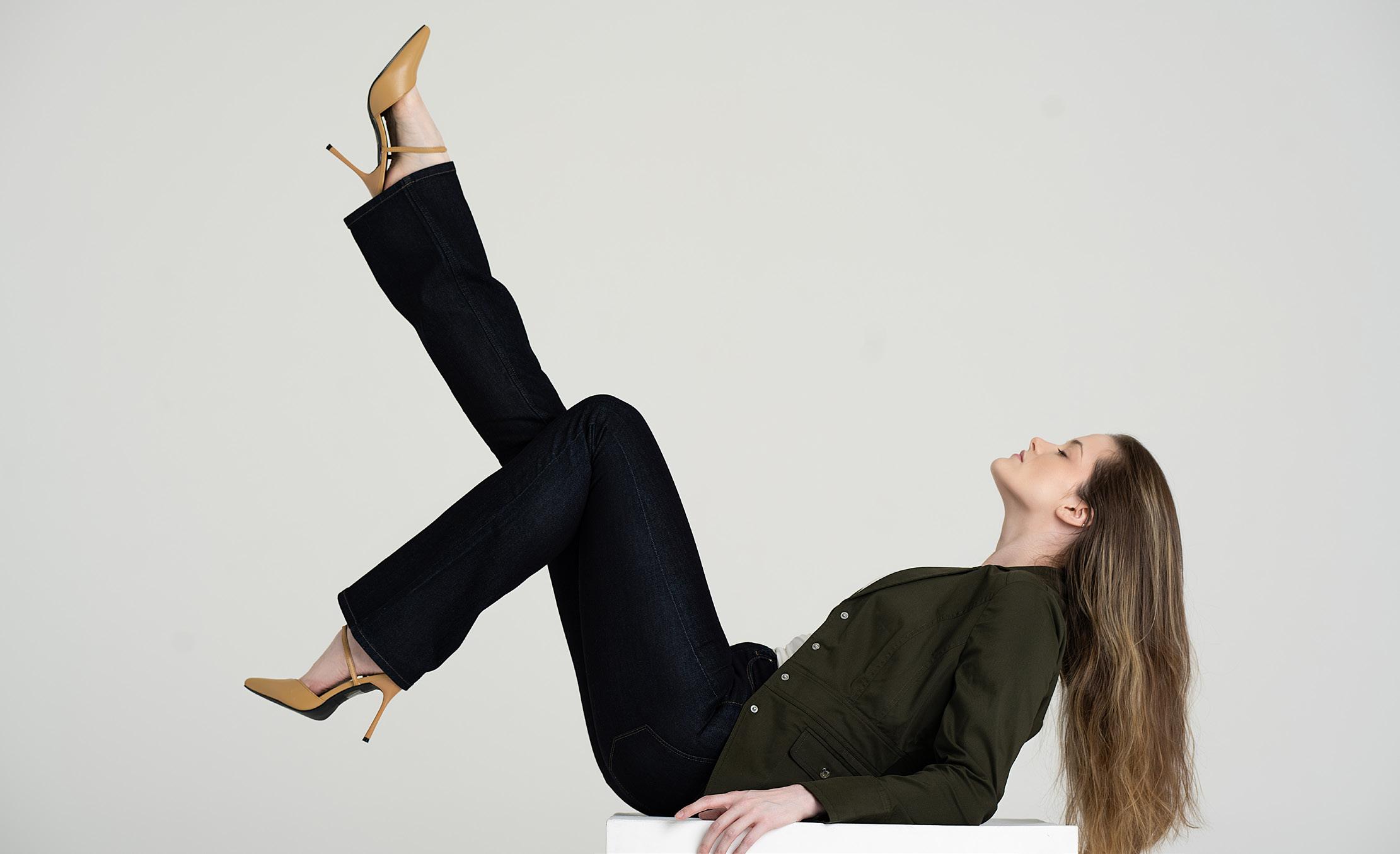 Paired perfectly with the top is a pair of dark navy blue jeans, exquisitely tailored to hug every curve with grace. These jeans aren’t just about fit; they speak volumes about the importance of precision in fashion. Dark denim is the unsung hero of every wardrobe.
