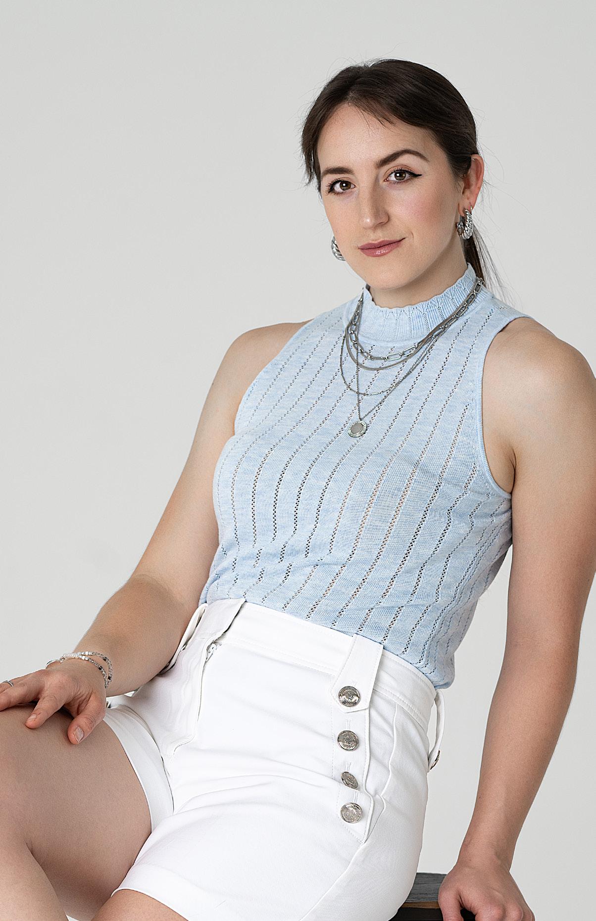In today’s fast-paced world, where fashion trends change at lightning speed, there is a certain allure in finding pieces that become staples, transcending seasons and fleeting fads. The light blue top and white textured shorts combination is one such ensemble—a sartorial statement that celebrates the art of dressing well.