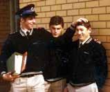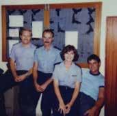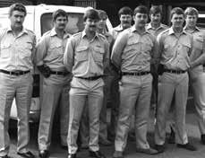 Above left: On duty (second from left) at the cricket at Adelaide Oval in 1987; above: a PR shot taken at Photographic Section around 2010; far left: first day at the academy as a cadet in 1985; left: as a probationary constable (second from left) at Thebarton barracks with Graham Smith, Sue Lucas and Kev Taylor.