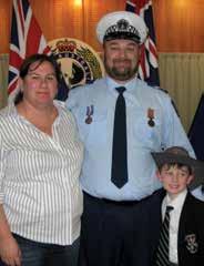 Above: Receiving the National Police Service Medal and clasps from Assistant Commissioner Linda Fellows in 2015; right: with wife Gabrielle Irvin-Speck and son Davis Irvin-Speck for the National and SAPOL Service Medal presentation in 2009; far right: at the Royal Adelaide Show in 2013.