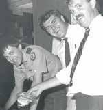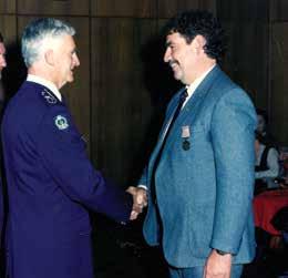 had rescued a driver whose vehicle had gone into the Port River; above: with colleagues depositing exhibits in the Whyalla police station property room in 1986; above right: with Detective Gary Griffin in the ward room of a visiting Royal Australian Navy ship at Port Adelaide in 1987.