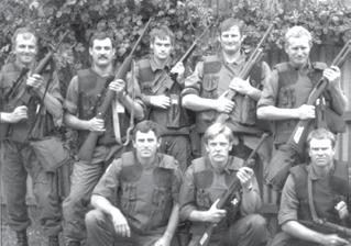 Clockwise from top: Arresting a gunman after a siege at n aracoorte in 1996 – Hawkins (left) with Peter foot and tony fioravanti (kneeling); Hawkins (back row, far right) with StAR group colleagues in 1982; Hawkins helps make an arrest after a high-speed chase in 2007