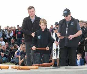 The wild Mount Gambier weather was no help in the dedication of this just-completed monument but it all ended in success.