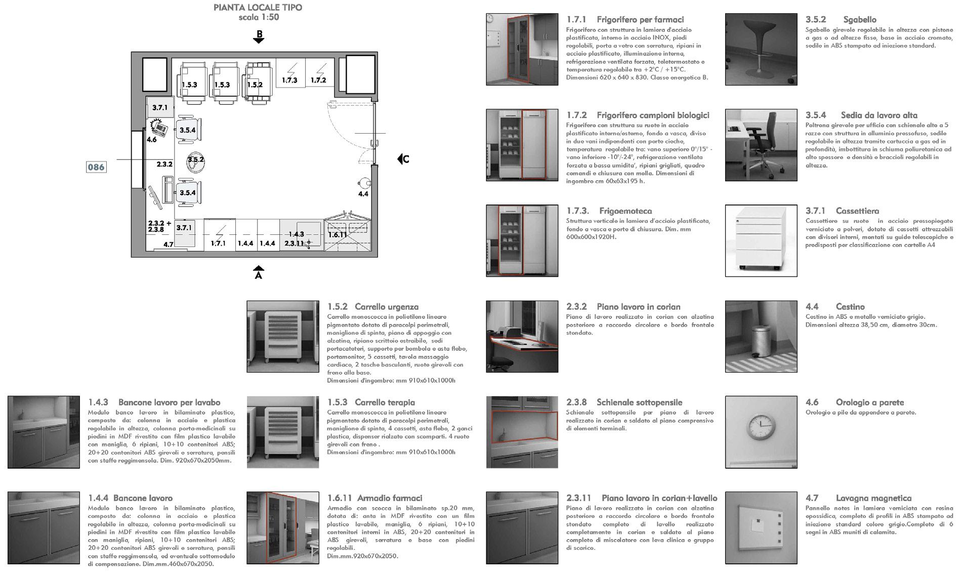 1. Studio acustico dell’ambiente interno con indicazione della distribuzione e definizione def50 a 1000 hz
