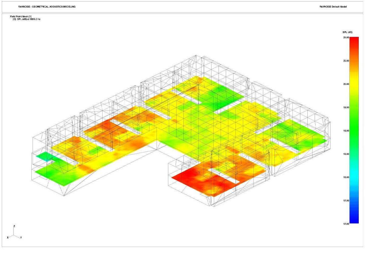 2. Studio acustico dell’ambiente interno con indicazionedistribuzione dei livelli di pressione sonora a 8000 hz