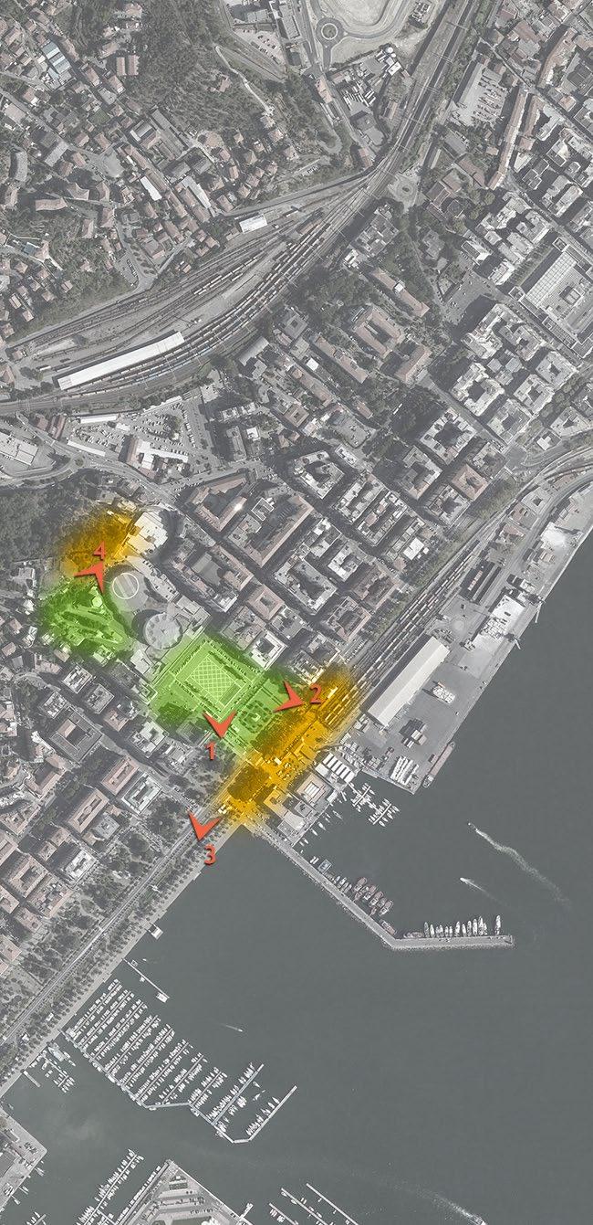 • Capitolo 1: “Le strategie sostenibili per la rigenerazione urbana e sociale”, viene indagato il concetto di rigenerazione che si intende applicare nel futuro sviluppo della Studio di Fattibilità per la definizione delle strategie progettuali. Sulla base della definizione di rigenerazione urbana si è cercato di identificare quali funzioni il luogo potrebbe ospitare in modo da cogliere quelle opportunità di sviluppo per la comunità locale che ad oggi non risultano completamente esaurite nell’assetto urbano attuale. Sono stati indagati alcuni aspetti relativi alle dinamiche sociali in atto quali i flussi crocieristici, l’indotto legato al turismo, l’offerta culturale della città.