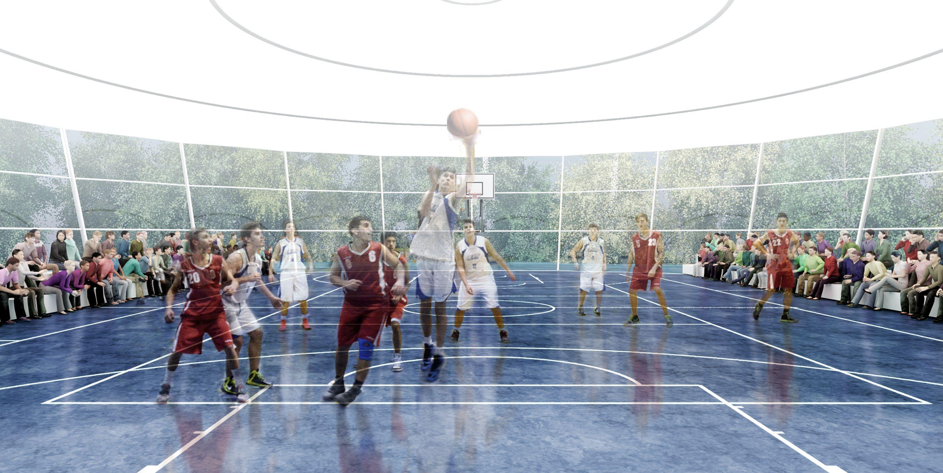 La prima soluzione ipotizzata prevede la realizzazione di una struttura a forma circolare in legno, leggera, permanente e polifunzionale, in cui poter insediare funzioni di natura ricreativa e sociale, quali teatro, sala conferenze a servizio della città e della vita religiosa della comunità spezzina, nonché spazi da adibire ad eventi culturali e mostre.