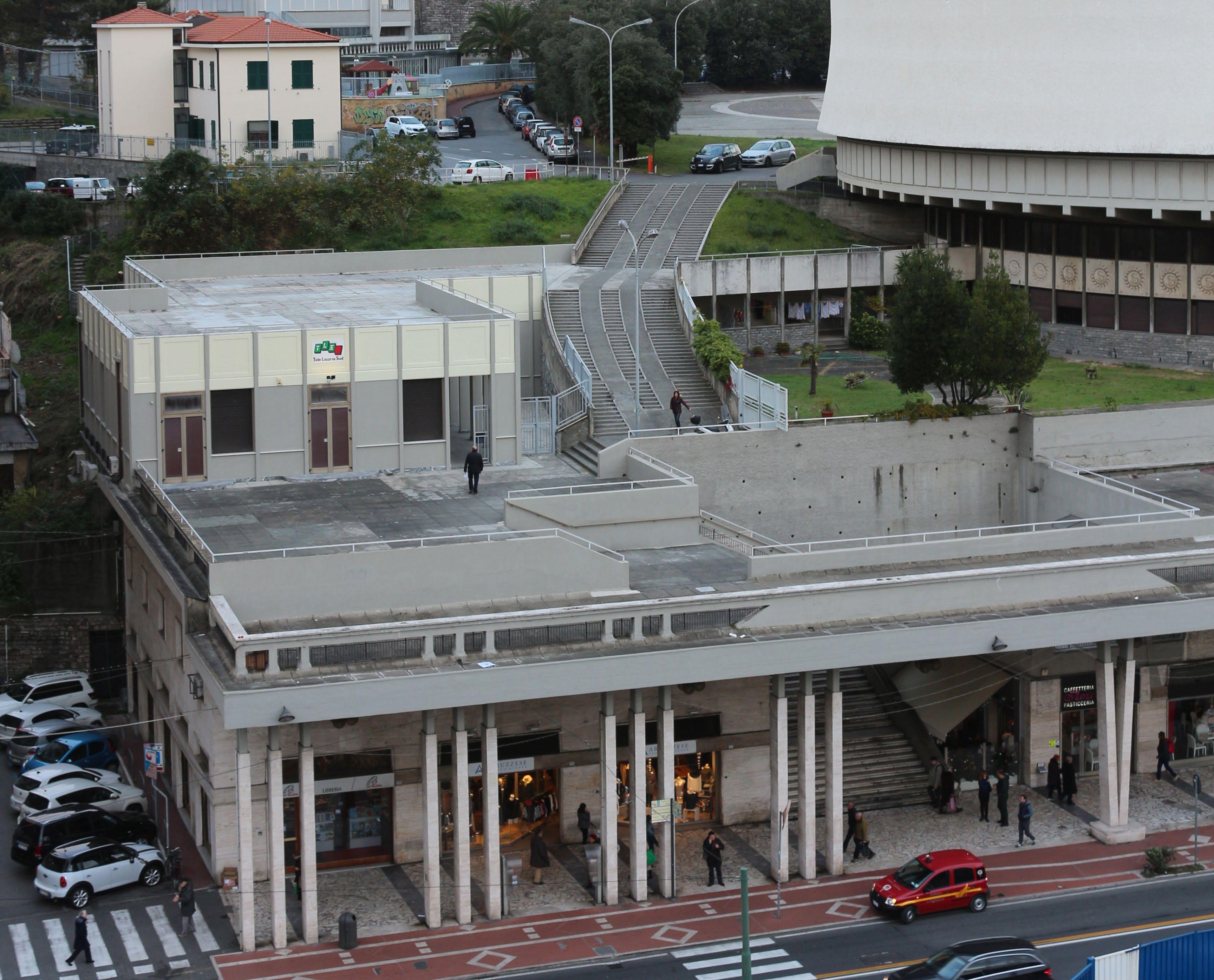 Tale ambito sarà accessibile attraverso un sistema trasportatore-elevatore (scale mobili) lato ponente e da un sistema di collegamento verticale non meccanizzato lato levante; viene inoltre prevista la possibilità di accedere al mezzanino da parte dell’utenza con particolari difficoltà motorie e visive attraverso la fermata di un ascensore, che collegherà Piazza Europa con il piano relativo al sagrato della cattedrale (Piazzale Papa Giovanni XXIII). Il piano ammezzato sarà caratterizzato dalla presenza di alcune attività commerciali, ricavate attraverso la riconfigurazione architettonica dei vani esistenti, integrati e complementari al sistema commerciale localizzato al piano terra del porticato. A servizio dell’accessibilità di tali esercizi, viene configurato un sistema destinato all’attraversamento pedonale definito da un porticato coperto, con vista su Piazza Europa e conseguentemente con visuale paesaggistica e panoramica lato mare della città. Viene inoltre prevista sul piano ammezzato la realizzazione di un ampio spazio centrale aperto a servizio dell’utenza e delle attività insediate, caratterizzato dalla presenza di un sistema frangisole come copertura.