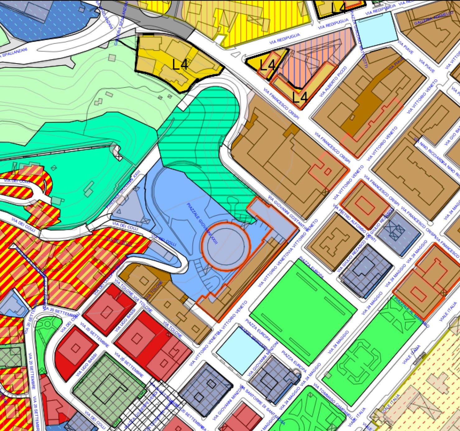 Gli indirizzi progettuali specifici per tale ambito prevedono: • riqualificazione della pavimentazione e degli arredi urbani della viabilità locale contigua a Piazza Europa e prospiciente il porticato della cattedrale