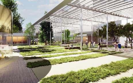 disegno curvilineo dei Bordi della nuova pavimentazione che si snoda verso i padiglioni