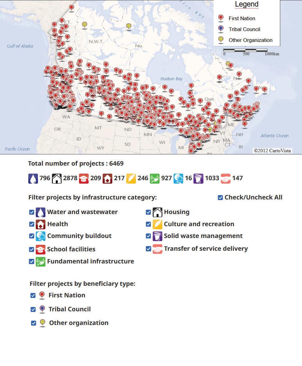 Source: Indigenous Services Canada. 2021. Interactive Map : Investing in First Nations community infrastructure. Retrieved from: https://geo.sac-isc.gc.ca/ciir-riim/ciir_riim_en.html
