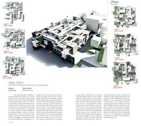 This research project conceptualizes the architectural “unit cell” as a living organism that is distributed and spread all over urban territory, by addressing an architectural problem which is as old as it is contemporary: the relationship of the “fraction” to the “whole”. How the system does respond to the individual cell, and to the core family? What is considered a “nucleus” today? The main findings of the research project concern the entire process itself, as well as its final outcome. Indeed, it opens and asks questions and, above all, suggests a general approach to urban-parametrism, responding to a | 44