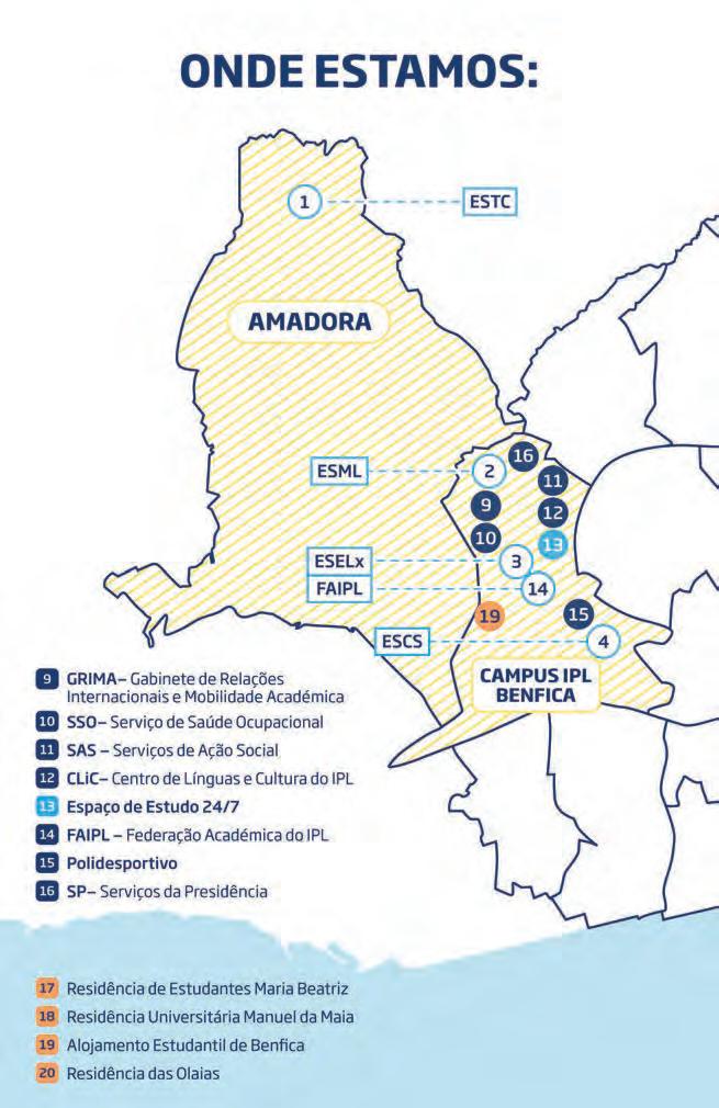 O IPL é composto por oito Escolas localizadas em diferentes zonas da cidade de Lisboa e Amadora. Esta diversidade garante uma oferta formativa ampla, nas áreas das artes, ciências empresariais, saúde, comunicação, educação, engenharia e um ambiente académico vivo, criativo e multidisciplinar.
