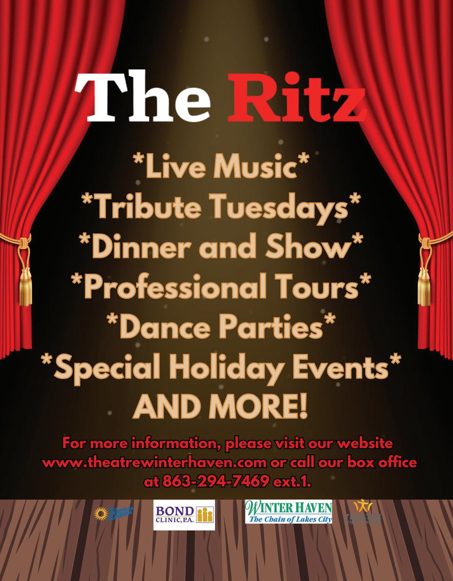 Apr 30. Dinner and a Show: Soul, Sass, and Brass. 5pm. Join the Historic Ritz for a dinner and a show featuring Nicole Sasser, founder and star of the tribute group Chicago Divas. Historic Ritz Theatre, Winter Haven. Tickets, $50. ritzwinterhaven.com