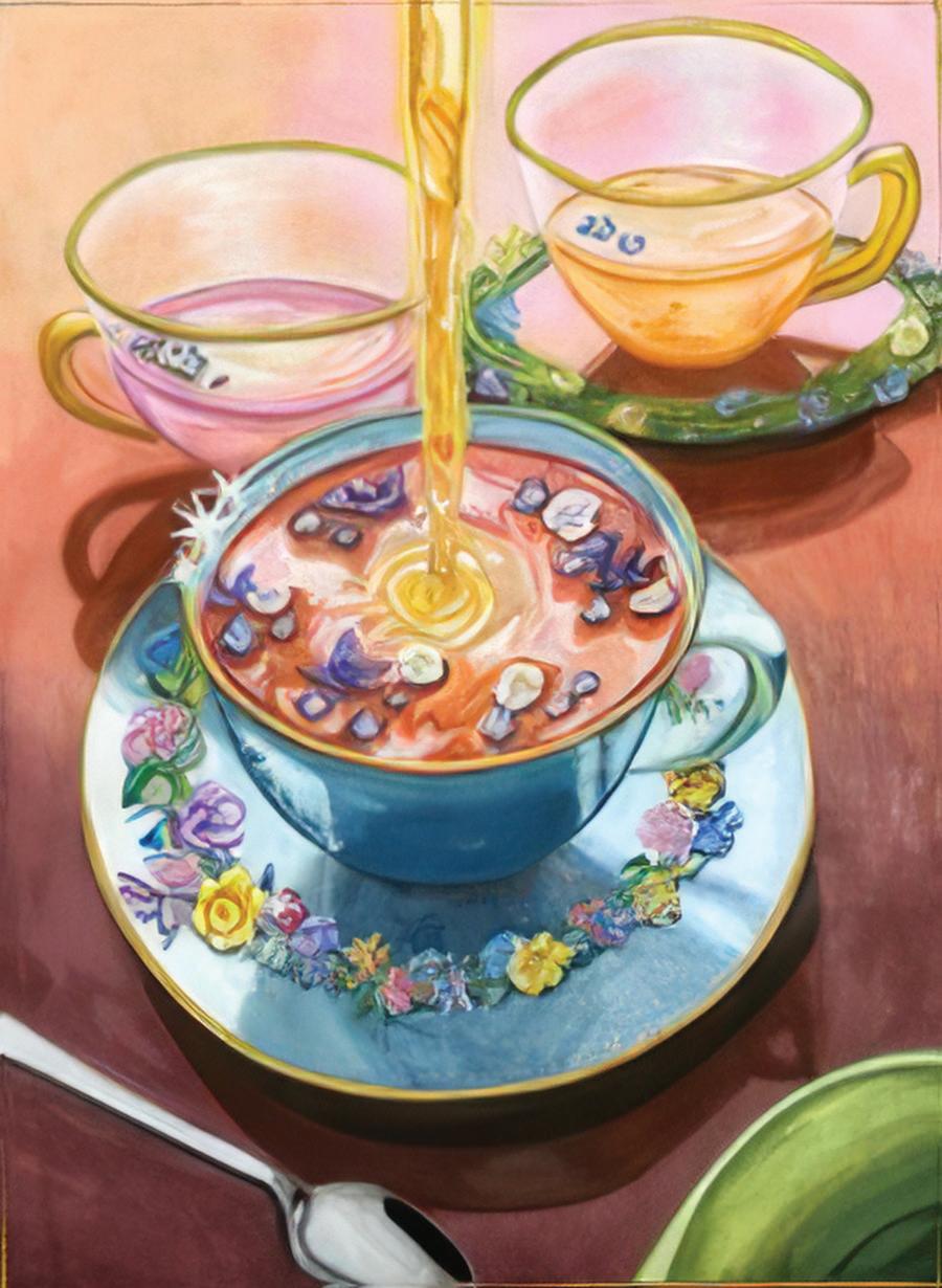 Connie Roy's painting, "Whispers of History," adorns the 2025 arts guide cover.