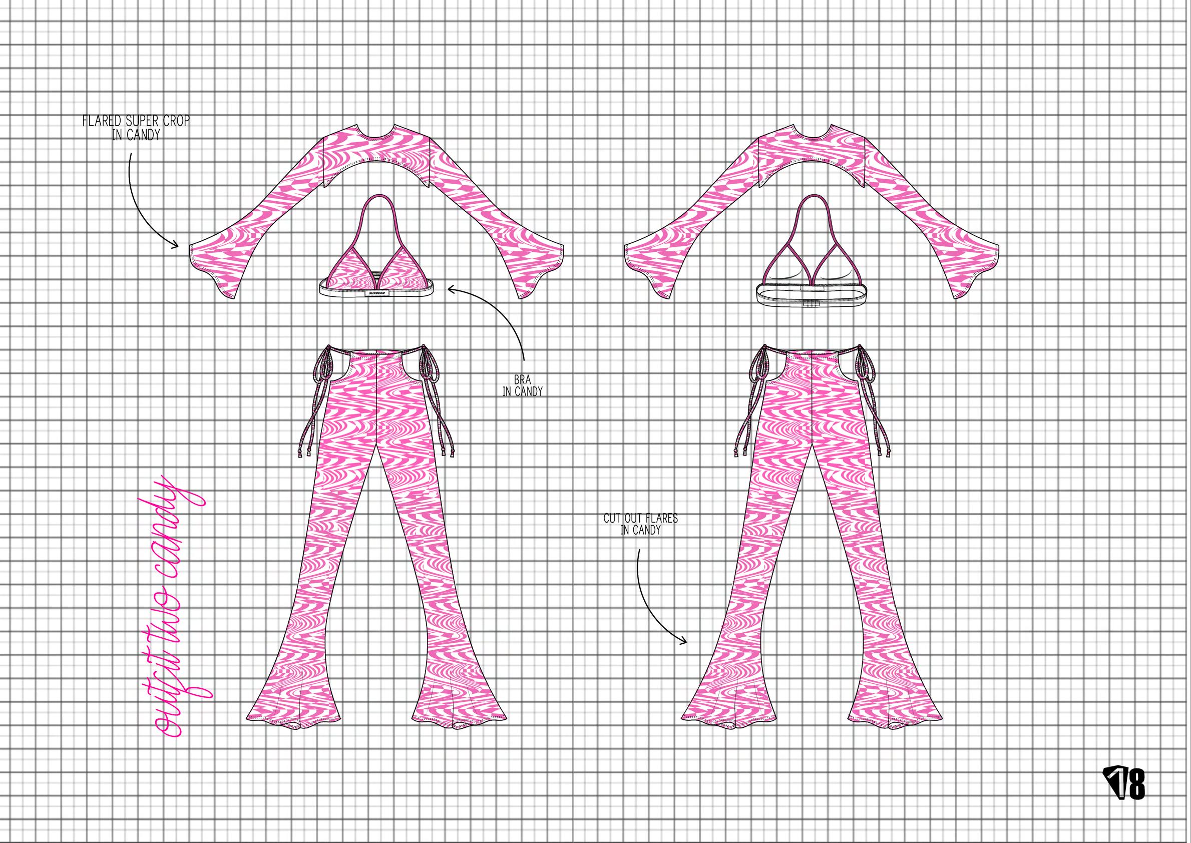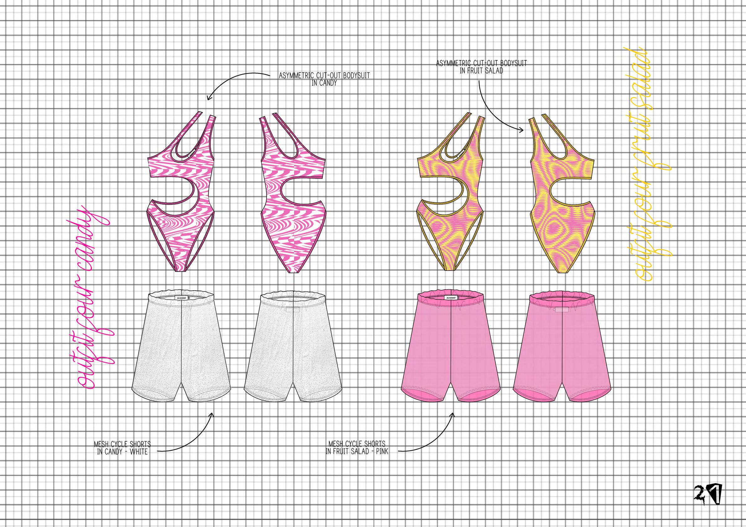 The theme was inspired by characters such as Bratz and Barbie. The collection was focused around four personas: The Girly Girl, The Funky Girl, The Badass Girl and The Glam Girl. Silhouettes were influenced by each character, offering a range of styles to Suxceed’s diverse customer base.