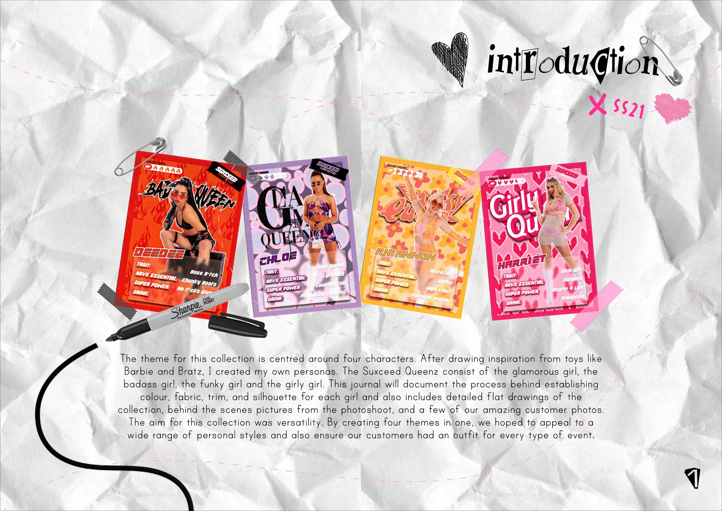 This journal documents the process behind the creation of the Queenz Collection for Suxceed Womens. This includes colour & print exploration, a sneak peak of the SS21 photoshoot, and a complete breakdown of every outfit in the collection. This journal also features a selection of photos from our amazing customers.