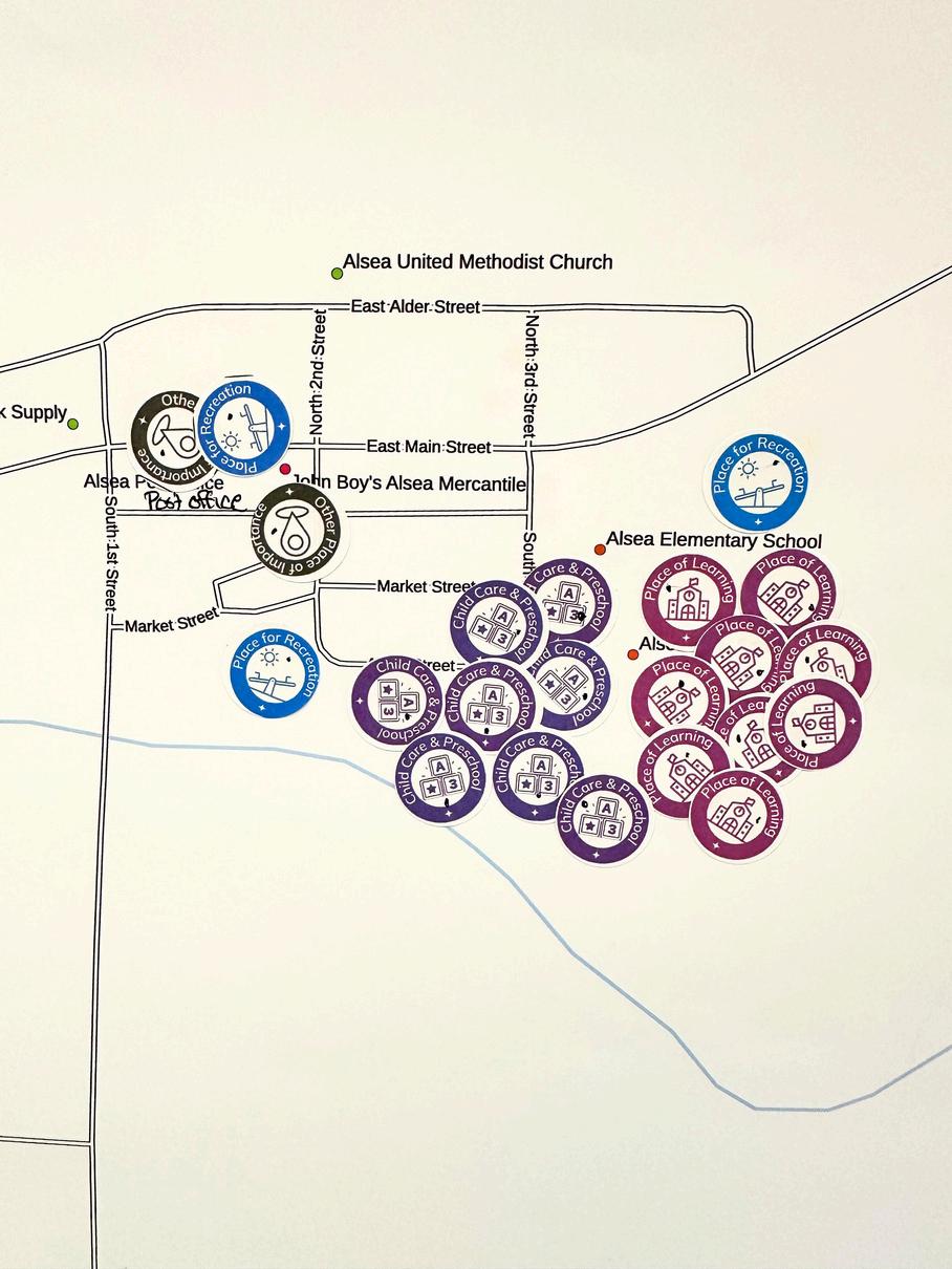 Sin embargo, el aislamiento del pueblo pequeño de Alsea quiere decir que existen muy pocos recursos comunitarios que las familias y los niños necesitan muy seguido. Alsea no tiene una tienda de alimentos, estación de gasolina o proveedores de salud a tiempo completo.