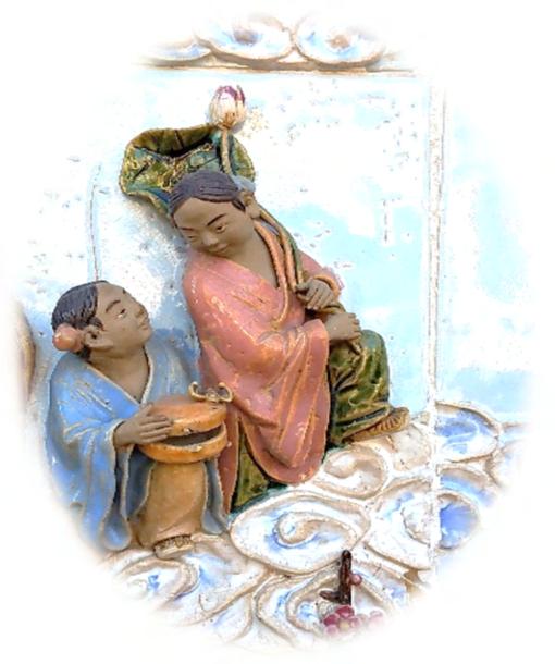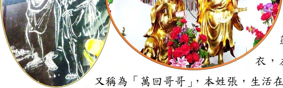 ~~~~~~~~~~~~~~~~~~~~~~~~~~~~~海濱文圃第九期~~~~~~~~~~~~~~~~~~~~~~~~~~~~~~~~~~ 8 據學者考證,清雍正以 前,「和合二仙」並不是特 指 寒 山 和 拾 得 ,二 仙 不 是一下子形成的,最初 的原型是一個叫萬回的 唐僧。萬回的造像頭髮 蓬鬆,笑容滿面,身穿綠 左手擎鼓,右手執棒。他 在唐朝貞觀年間。他的兄長 遠赴戰場,久無音信,雙親極為掛念,萬回就自告奮勇前去探望。他早上出門, 晚上就趕了回來,手上拿的家書封口的糨糊還沒乾透呢 ! 人
