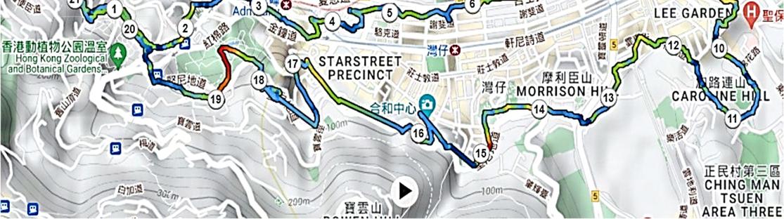 子組冠軍更是由大坑青年團的楊華生奪得。而 楊華生在日治時期仍有參與本地的長跑比賽並且得到冠軍,已是後話。 根據筆者試跑的全球衛星定位系統 (GPS) 紀錄 [圖 3],路線大約是 11.7 公 [02] 香港工商日報,1935年2 [03] 筆者試跑中南 體育會全港華人長途 賽跑的路線資料