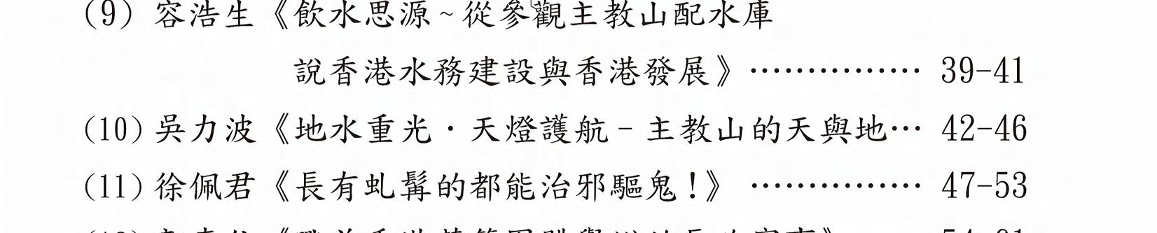 會員的導賞、學習及研究等,那怕是廖廖數語,點滴心 得,只要是圍繞歷史、文化、生態地質及掌故便可,希 望可以引領會員以文字發表,形式生動,不拘文體,甚