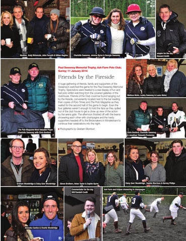 Friends by the Fireside A huge gathering of friends, family and supporters of the Sweeney’s watched the game for the Paul Sweeney Memorial Trophy. Spectators were treated to a real display of fun and fast polo whilst watching from the covered galleries of the clubhouse. Friends of the Club could be found hanging out by the fireside, conveniently located next to the bar reading their copies of Polo Times and The Polo Magazine as they waited for the second half of the game to begin. Even the four galleries weren’t enough to hold the fans as they spilled out of the club house to get a close up view of the action by the arena gate. The afternoon finished off with the teams showering each other with champagne and the hardy supporters headed off to the Brickmakers in Windelsham to continue their celebrations into the night. The Polo Magazine Most Valuable Player Charlotte Sweeney with Chris Benford