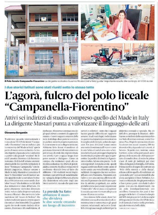 Dal Piano regionale di dimensionamento scolastico 2024/2025 è nato il Polo Liceale “Campanella Fiorentino", con Delibera della Giunta Regionale n. 719 del 15/12/2024 ai sensi del Decreto “Milleproroghe” e successiva integrazione con delibera n.1 del 4 gennaio 2025, dall’unione di due storiche eccellenze scolastiche del territorio lametino, il Liceo “Tommaso Campanella" e il Liceo “Francesco Fiorentino”.