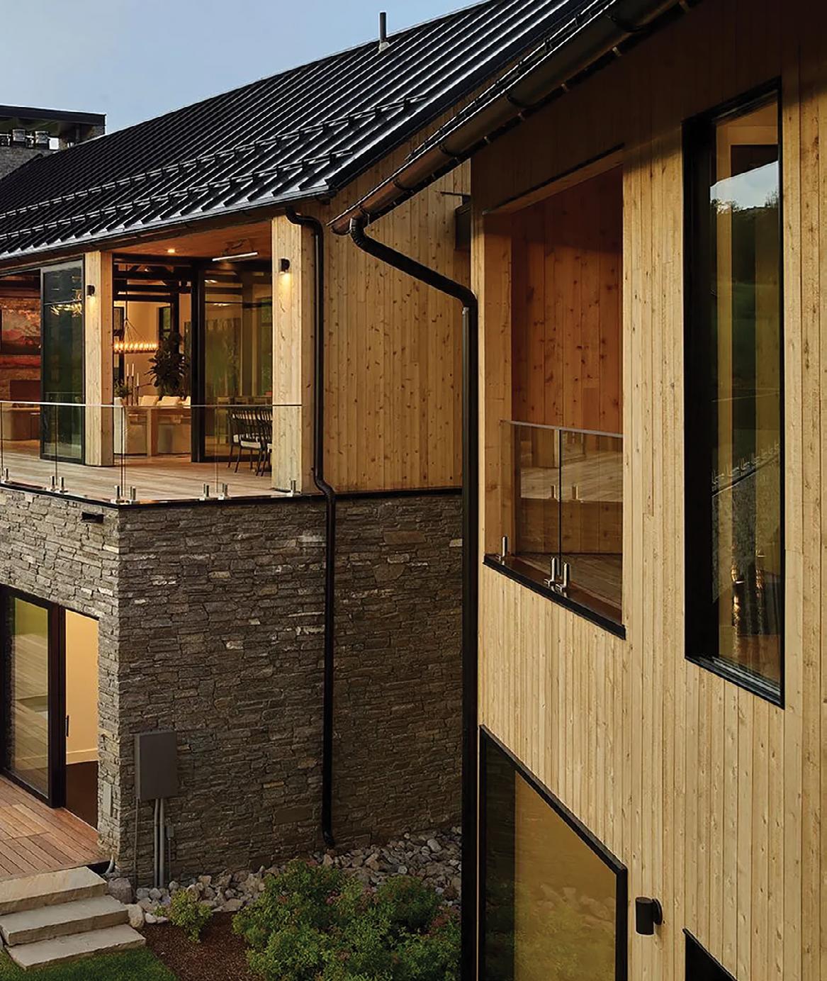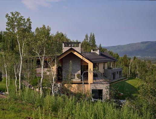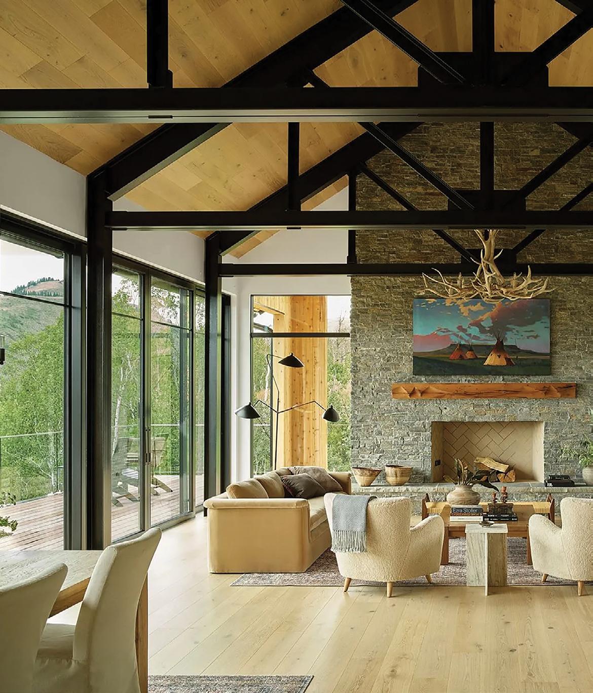 needs. At the center of the home where the main level and lower level meet is a causeway flanked by expansive two-story windows which saturate the home with natural light while providing endless views of the surrounding wilderness.
