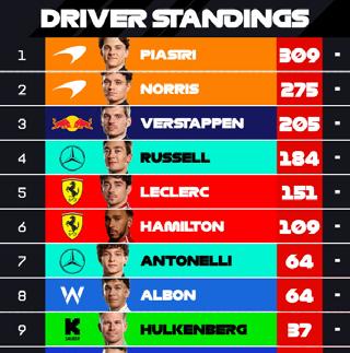 Oscar stretches his lead to 34 points, as a new face joins the top 10 of F1.