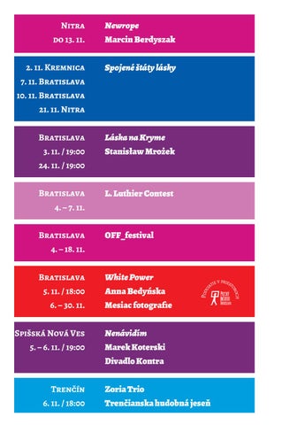 6. – 30. 11. Spišská Nová Ves 5. – 6. 11. / 19:00