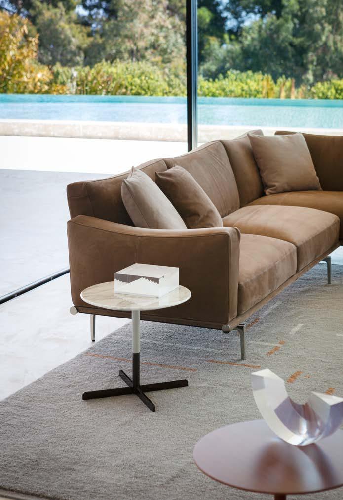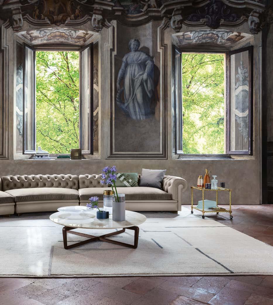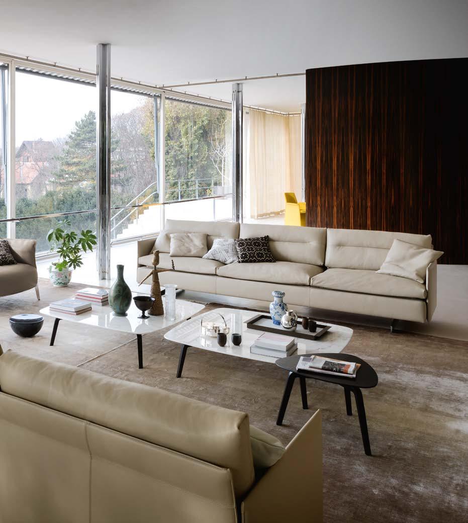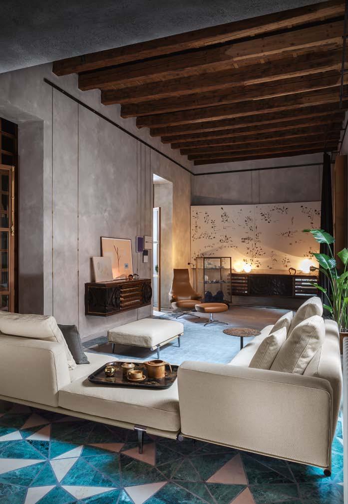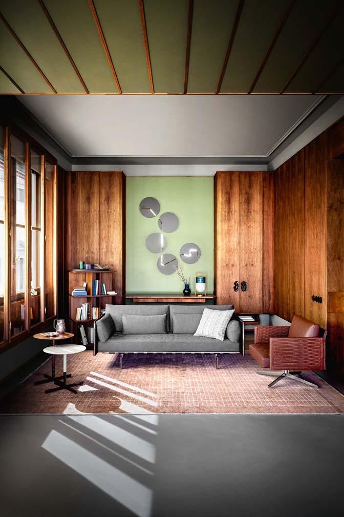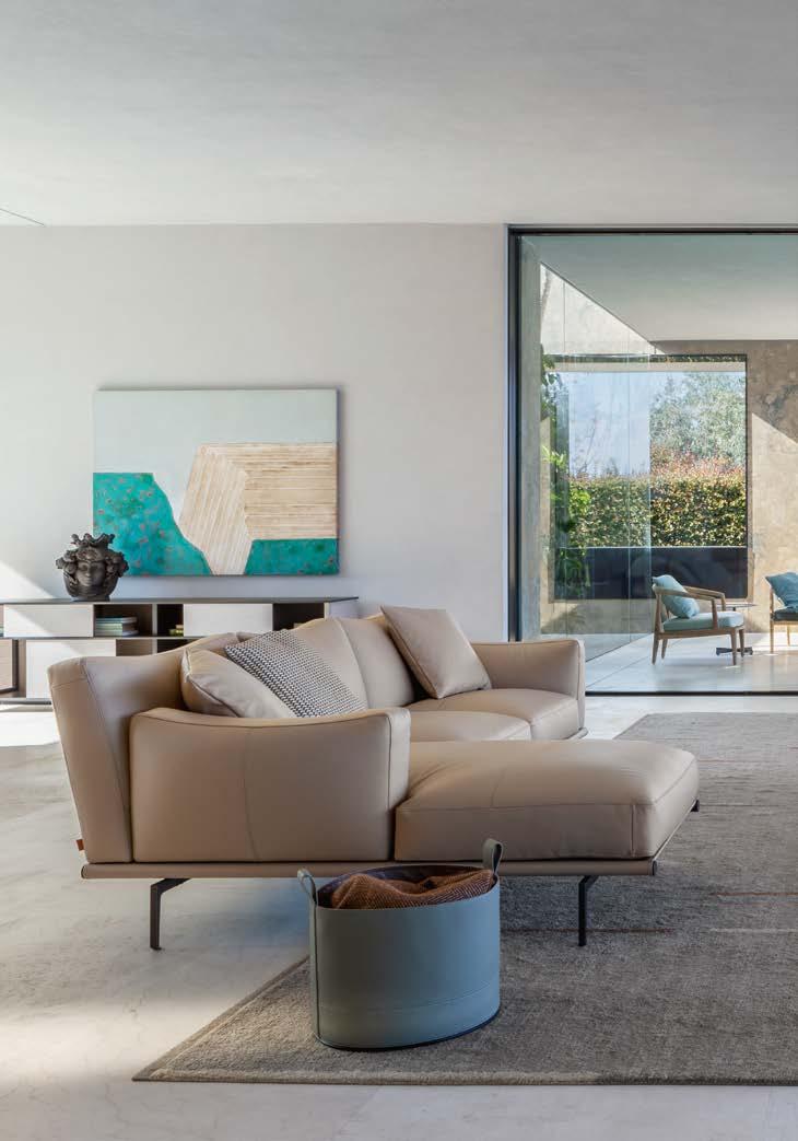 L’intention de Poltrona Frau est pré cisément – plutôt que de concevoir et produire des meubles – de créer une harmonie entre les personnes, les es paces et les choses. Une consonance intérieure qui nous accompagne sans jamais s’imposer au regard, une sorte de fil rouge émotionnel et esthétique capable de comprendre et d’accueillir des espaces et des états d’âme dif férents avec cette même sensibilité, discrète et élégante.