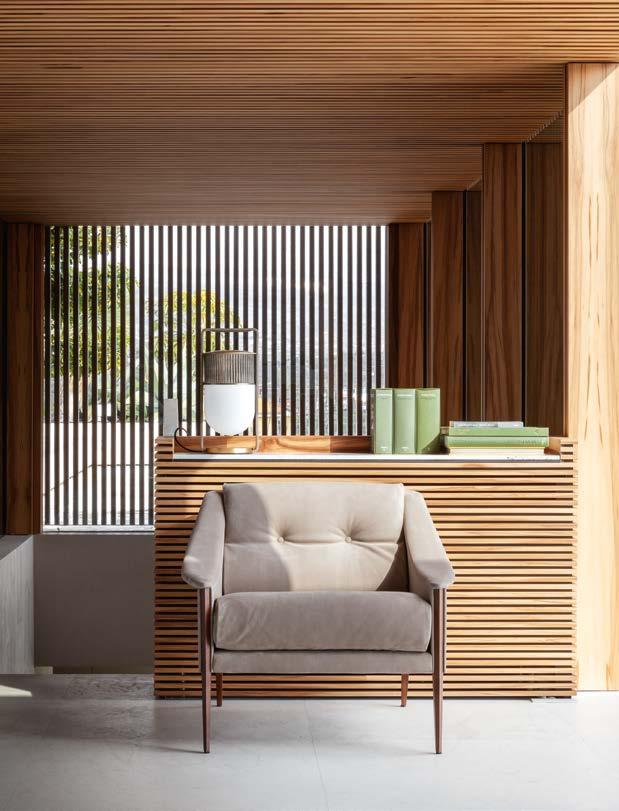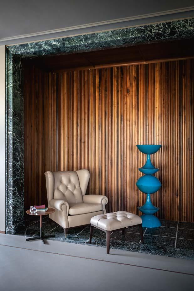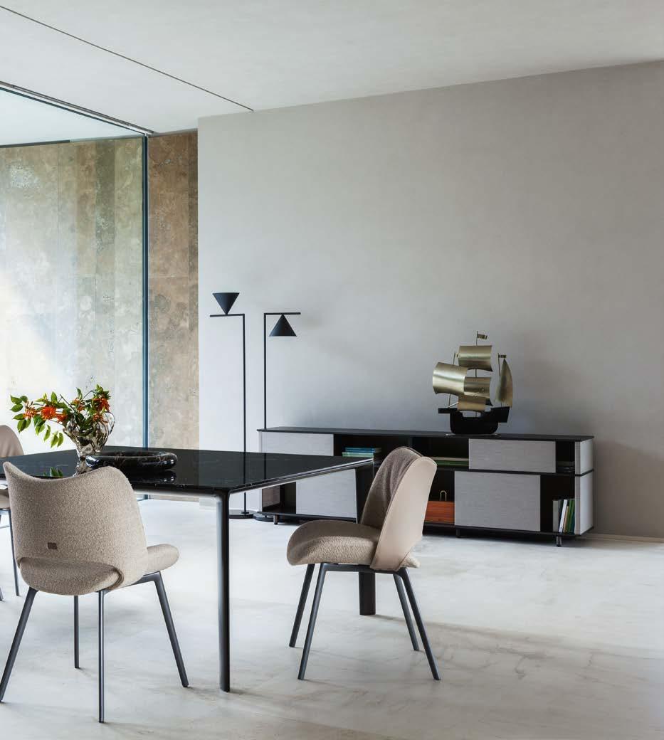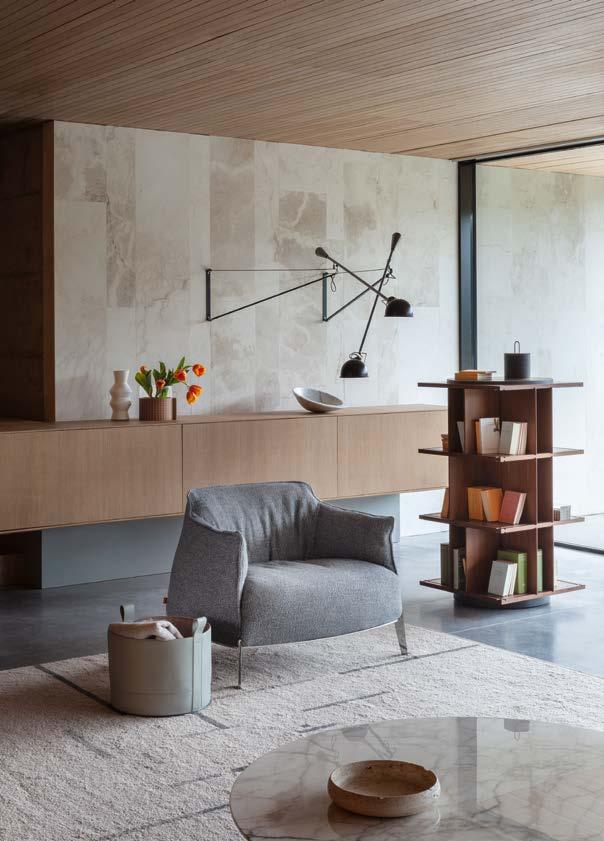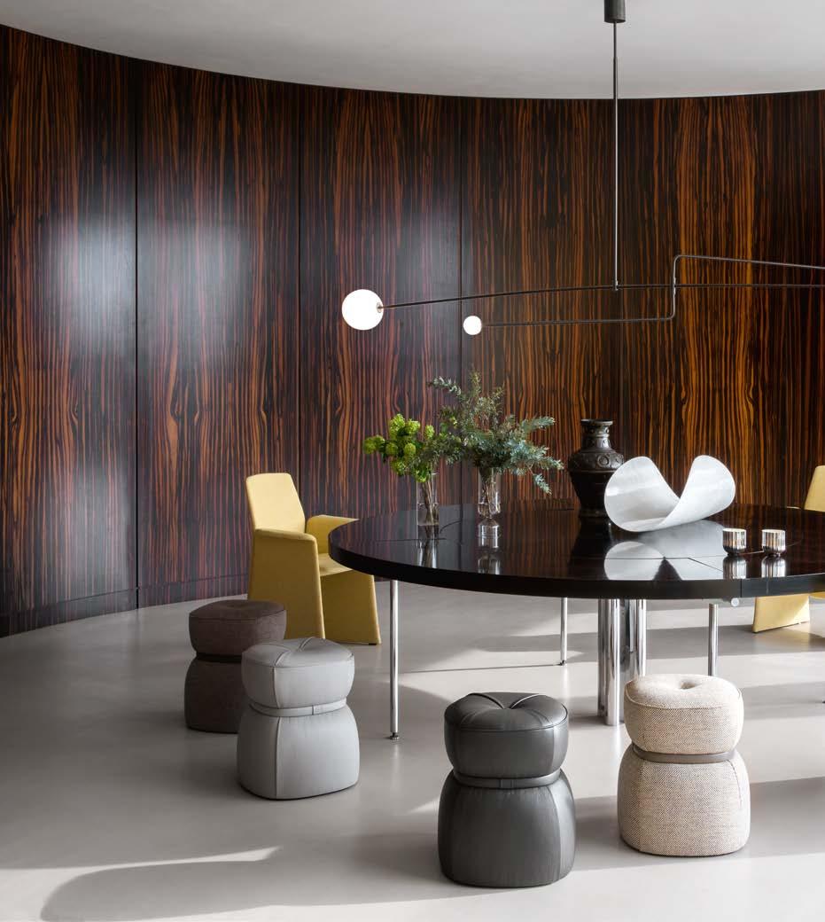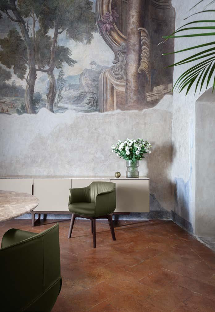 L’intention de Poltrona Frau est pré cisément – plutôt que de concevoir et produire des meubles – de créer une harmonie entre les personnes, les es paces et les choses. Une consonance intérieure qui nous accompagne sans jamais s’imposer au regard, une sorte de fil rouge émotionnel et esthétique capable de comprendre et d’accueillir des espaces et des états d’âme dif férents avec cette même sensibilité, discrète et élégante.