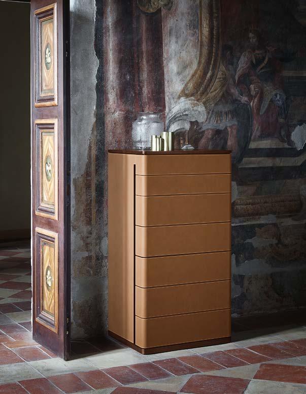 ↑ Fidelio Notte High drawer chest, Saddle Extra Cammello / Canaletto walnut