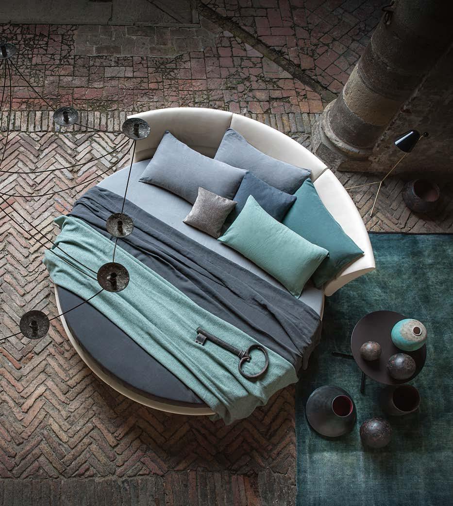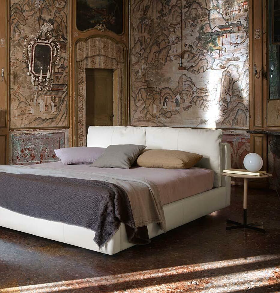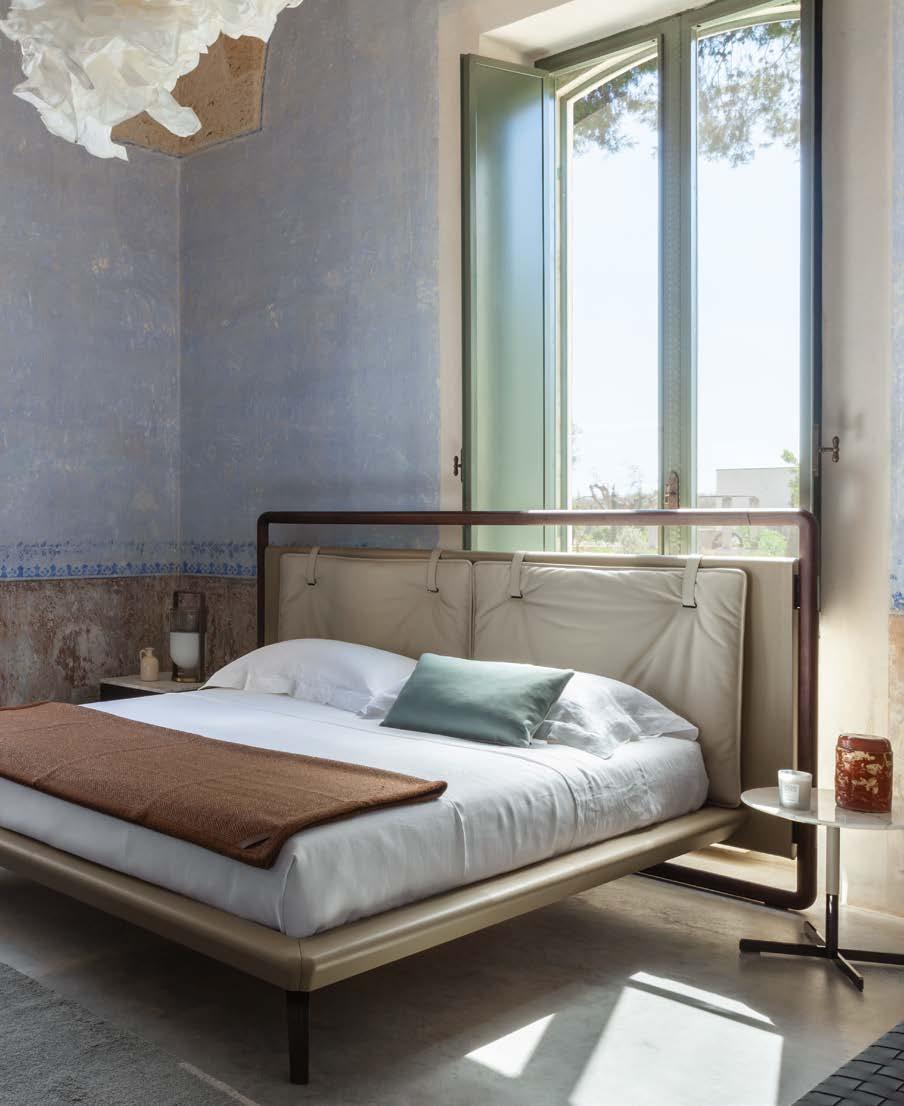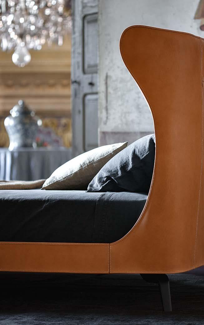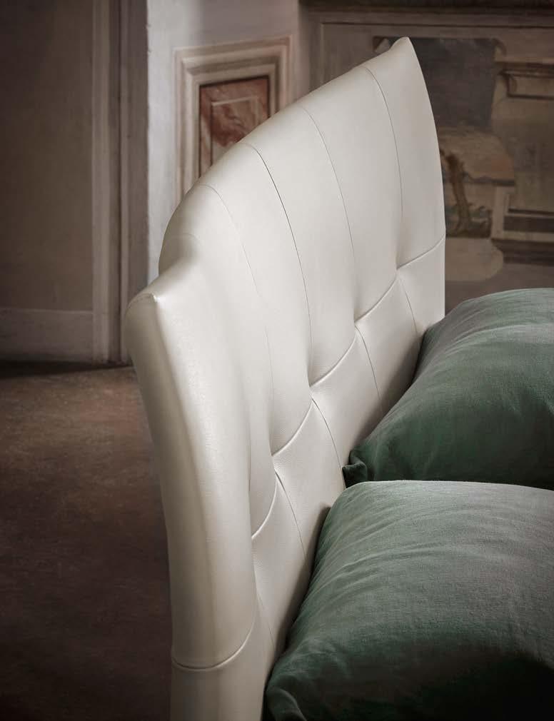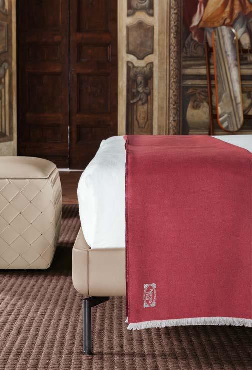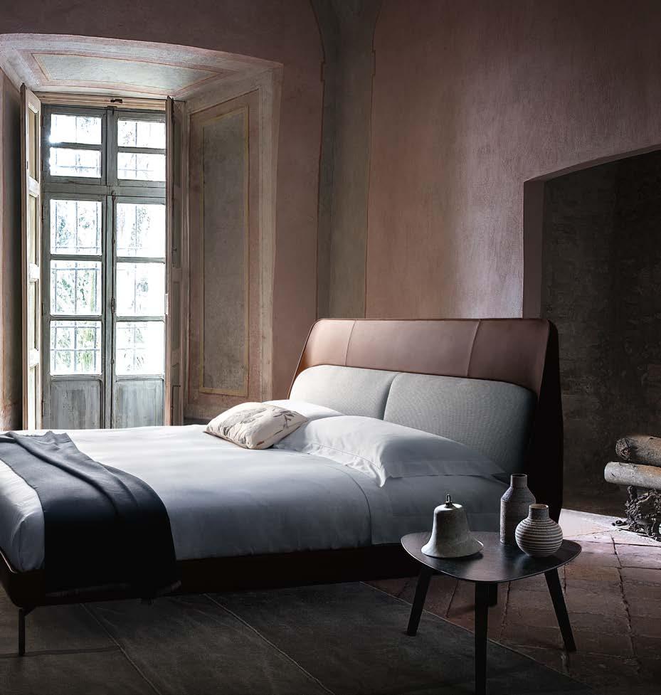 Di stanza in stanza affiora una storia di arte e di magia, che si svela pie namente nella prima luce del mattino. Le quinte profonde di una grande fi nestra. Un affresco prezioso e i suoi colori voluttuosi. Il gioco di pieni e vuoti di un’antica boiserie. E poi forme disegnate per accogliere il sonno con naturale eleganza. La pelle lavorata da artigiani che ne conoscono tutti i segreti. Il cuoio e i tessuti. Il legno e l’acciaio. Soffici piume e raffinate cro mie. Il letto come architettura e nido. Come incontro calibrato fra design contemporaneo e tradizione.