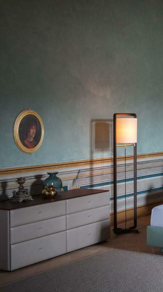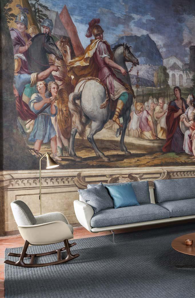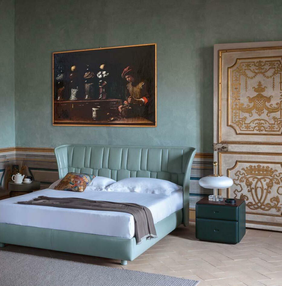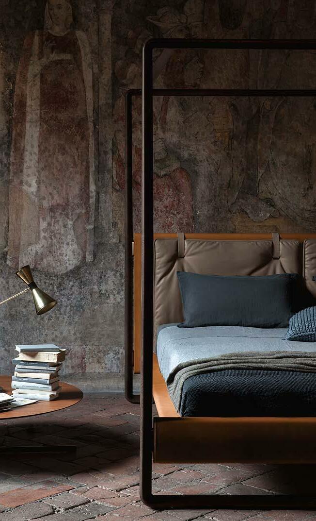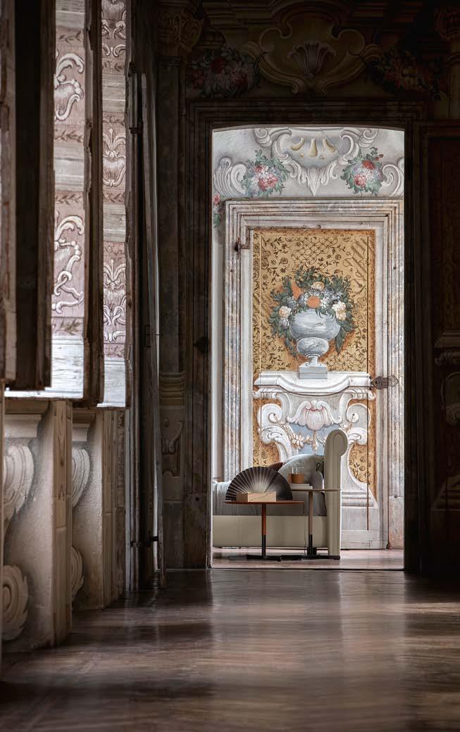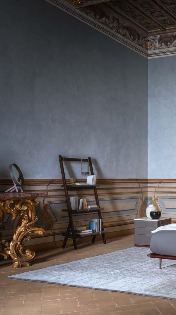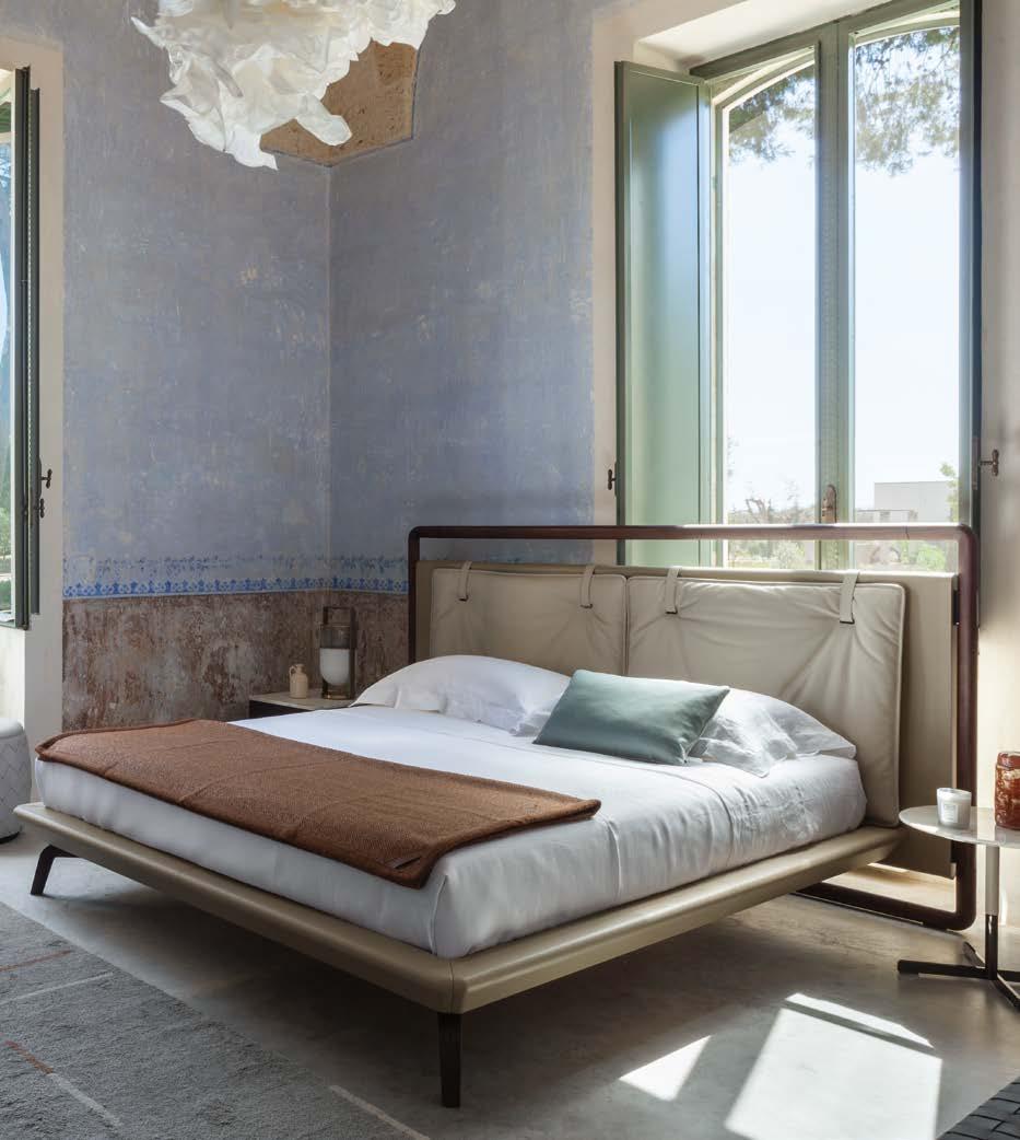Di stanza in stanza affiora una storia di arte e di magia, che si svela pie namente nella prima luce del mattino. Le quinte profonde di una grande fi nestra. Un affresco prezioso e i suoi colori voluttuosi. Il gioco di pieni e vuoti di un’antica boiserie. E poi forme disegnate per accogliere il sonno con naturale eleganza. La pelle lavorata da artigiani che ne conoscono tutti i segreti. Il cuoio e i tessuti. Il legno e l’acciaio. Soffici piume e raffinate cro mie. Il letto come architettura e nido. Come incontro calibrato fra design contemporaneo e tradizione.