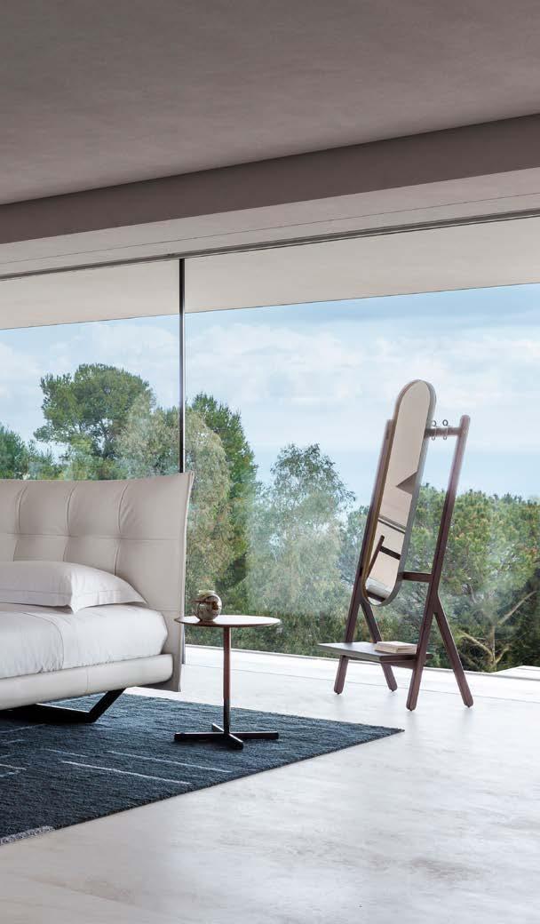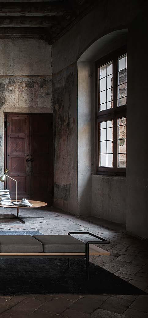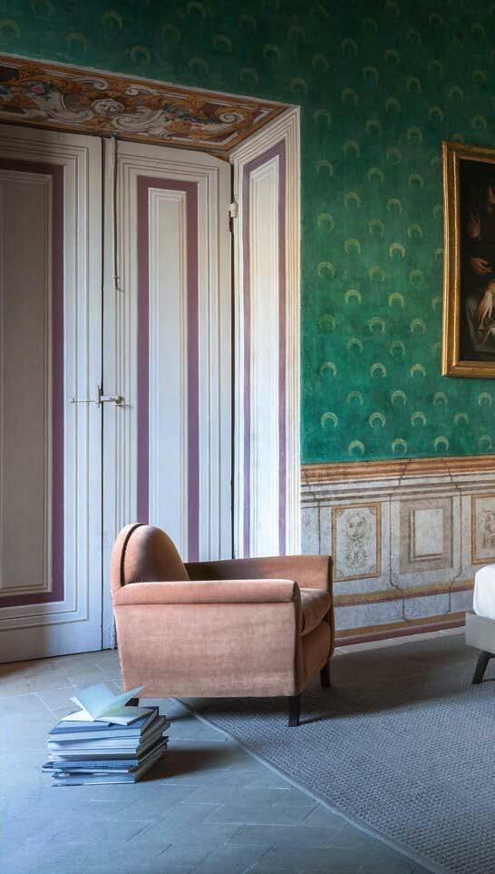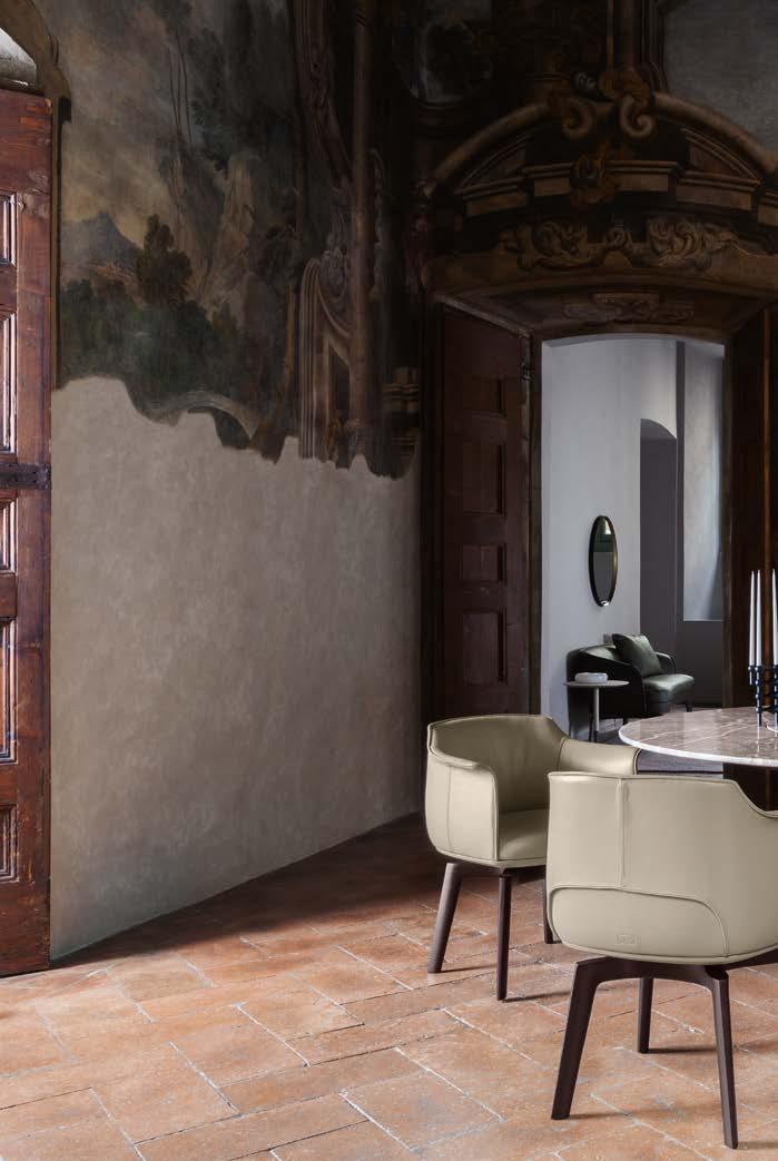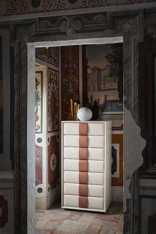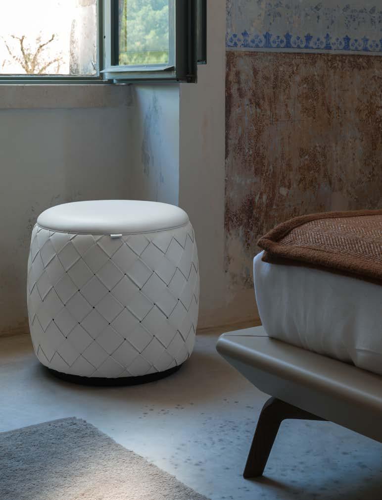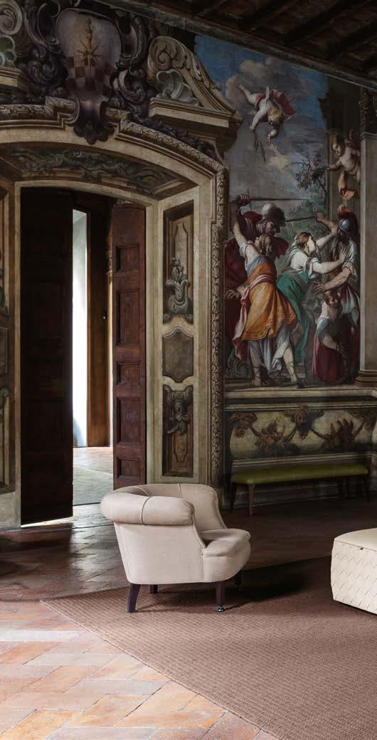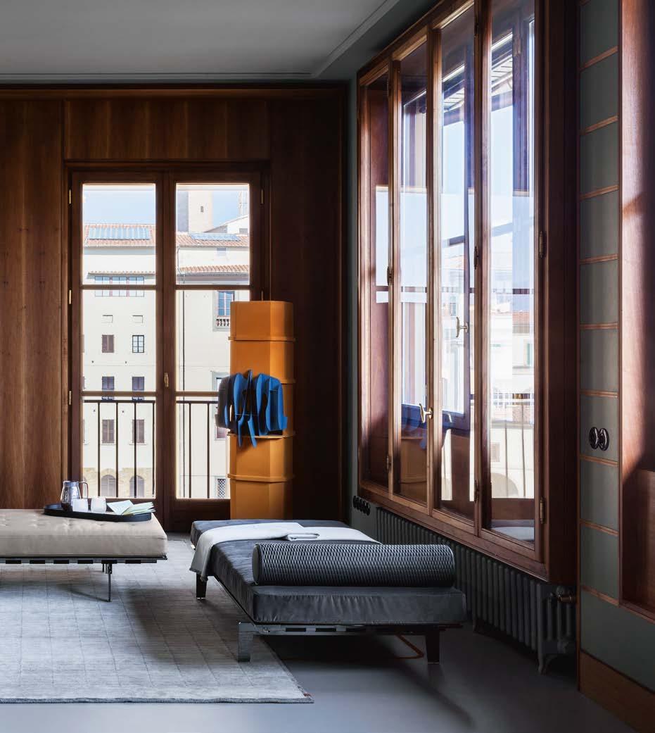 Di stanza in stanza affiora una storia di arte e di magia, che si svela pie namente nella prima luce del mattino. Le quinte profonde di una grande fi nestra. Un affresco prezioso e i suoi colori voluttuosi. Il gioco di pieni e vuoti di un’antica boiserie. E poi forme disegnate per accogliere il sonno con naturale eleganza. La pelle lavorata da artigiani che ne conoscono tutti i segreti. Il cuoio e i tessuti. Il legno e l’acciaio. Soffici piume e raffinate cro mie. Il letto come architettura e nido. Come incontro calibrato fra design contemporaneo e tradizione.