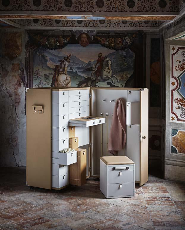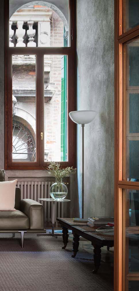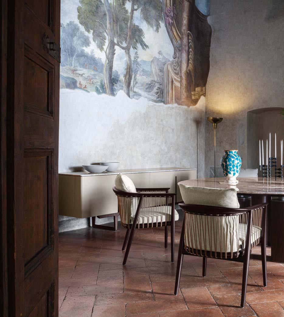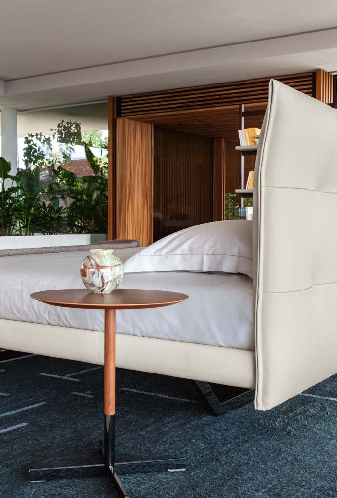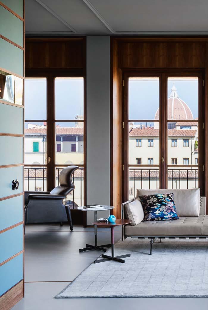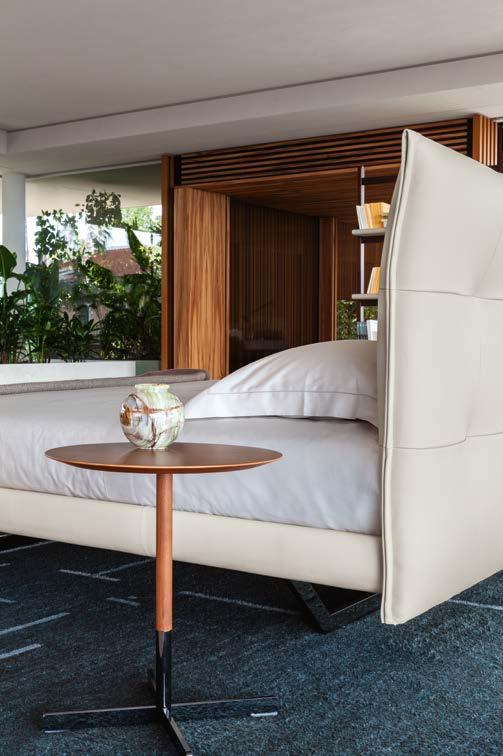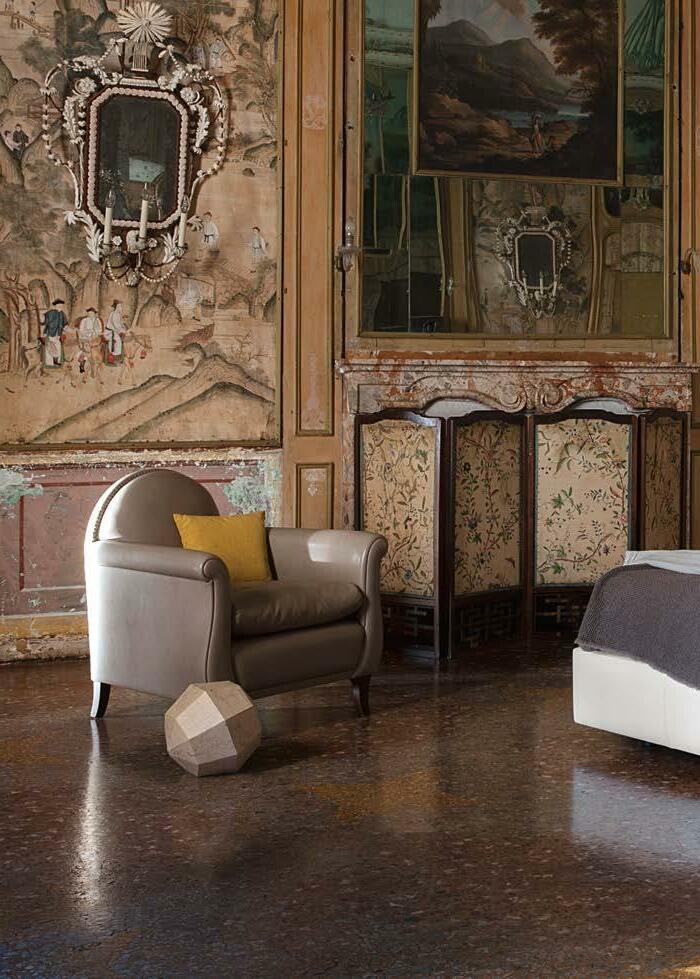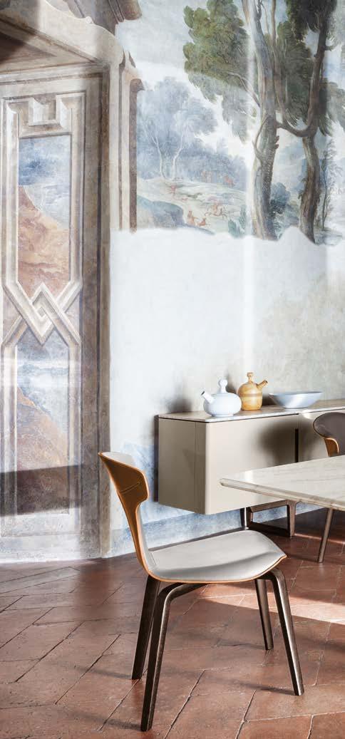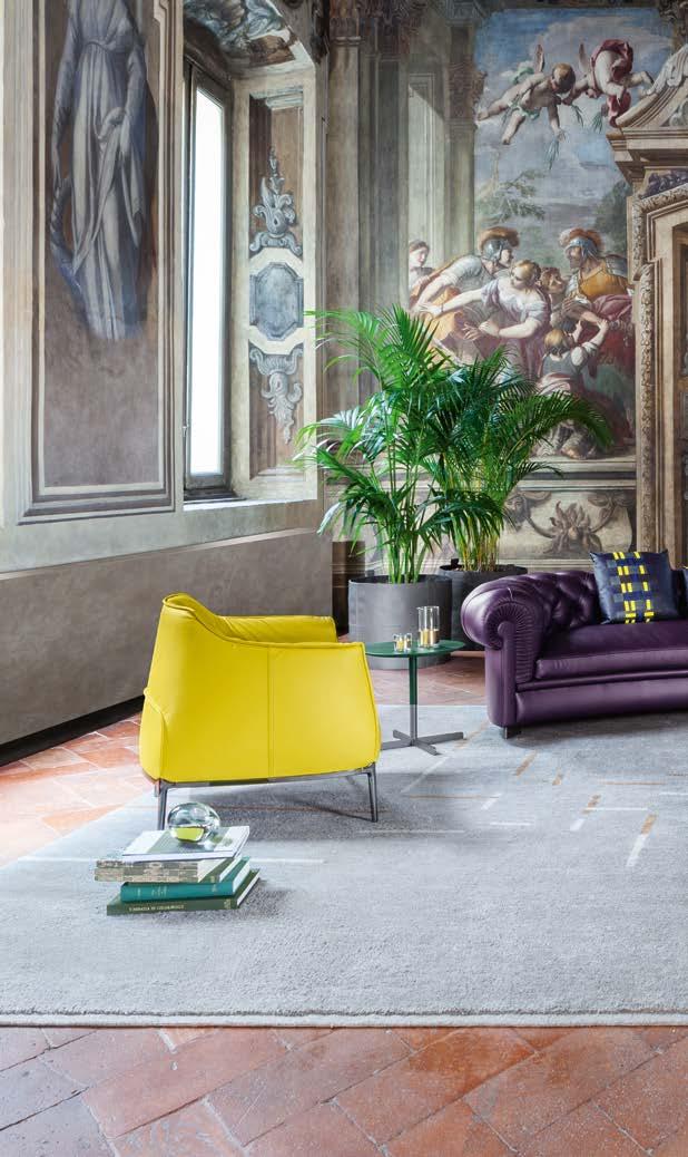 Di stanza in stanza affiora una storia di arte e di magia, che si svela pie namente nella prima luce del mattino. Le quinte profonde di una grande fi nestra. Un affresco prezioso e i suoi colori voluttuosi. Il gioco di pieni e vuoti di un’antica boiserie. E poi forme disegnate per accogliere il sonno con naturale eleganza. La pelle lavorata da artigiani che ne conoscono tutti i segreti. Il cuoio e i tessuti. Il legno e l’acciaio. Soffici piume e raffinate cro mie. Il letto come architettura e nido. Come incontro calibrato fra design contemporaneo e tradizione.