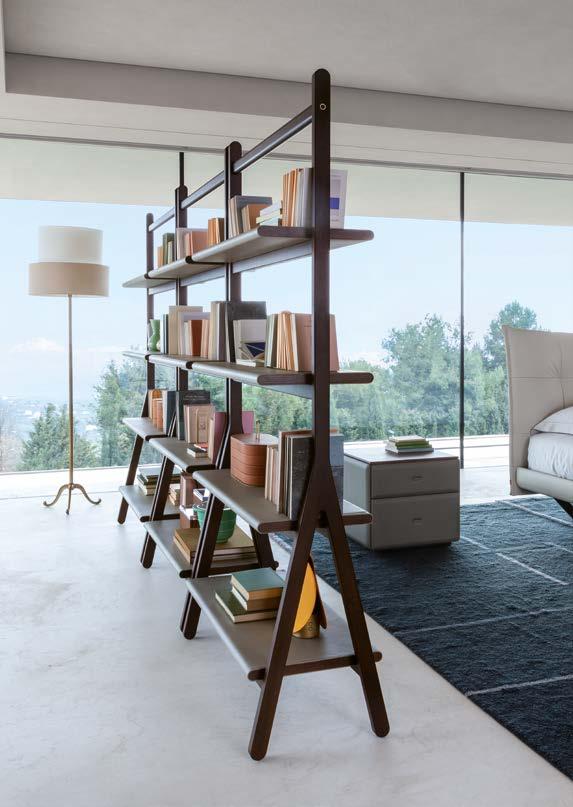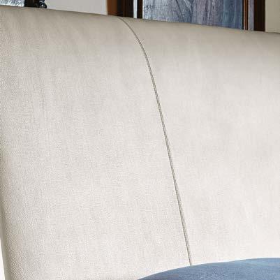 A calibrated and harmoniously designed bed of measured elegance. A vision of great balance, putting particularly emphasis on the characteristically rounded headrest. Composed of a solid poplar and beech frame with mixed-density padding, it is slightly inclined and made even more comfortable by the cushions which facilitate an easy reading position as well as relaxation.