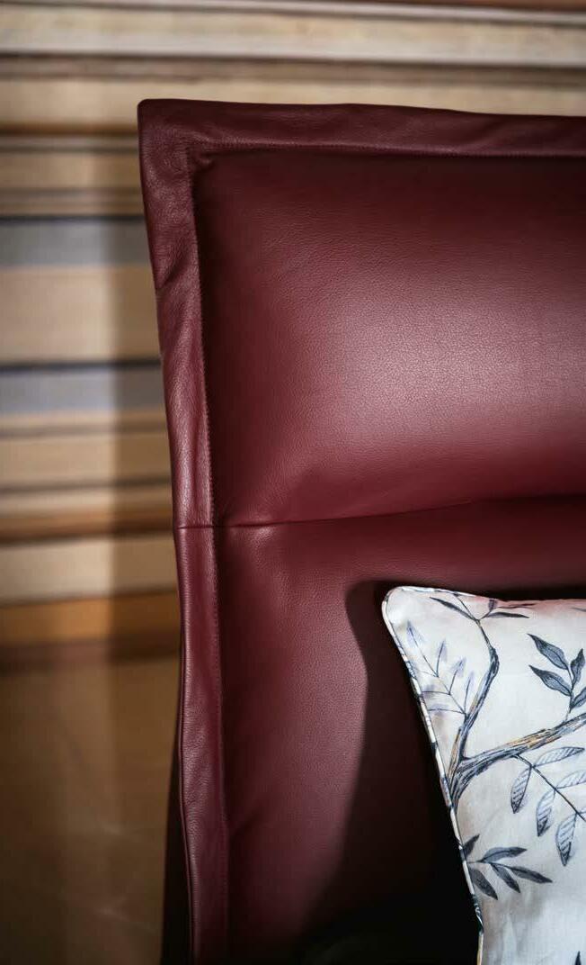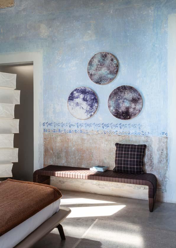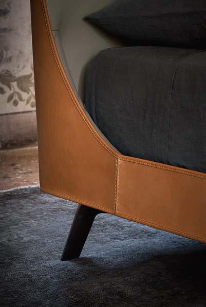 D’une chambre à une autre émerge une histoire d’art et de magie, qui se dévoile pleinement dans la première lumière du matin. Les coulisses profondes d’une grande fenêtre. Une fresque précieuse, et ses couleurs voluptueuses. Le jeu de pleins et de vides d’une boiserie ancienne. Et puis des formes conçues pour accueillir le sommeil avec une élé gance naturelle. Le cuir traité par des artisans qui en connaissent tous les secrets. Le cuir et les tissus. Le bois et l’acier. Des plumes légères et des tons raffinés. Le lit comme une architecture et un nid. Comme une rencontre cali brée entre le design contemporain et la tradition.