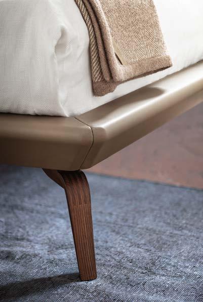 A bed designed to take centre stage in the room where its headboard stands out, inspired, in terms of the curved lines that envelop the sleeping surface, by the Lazzeroni armchair from which it takes its name.