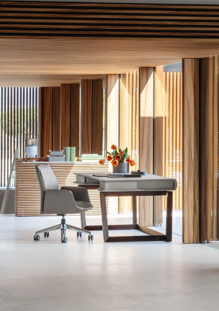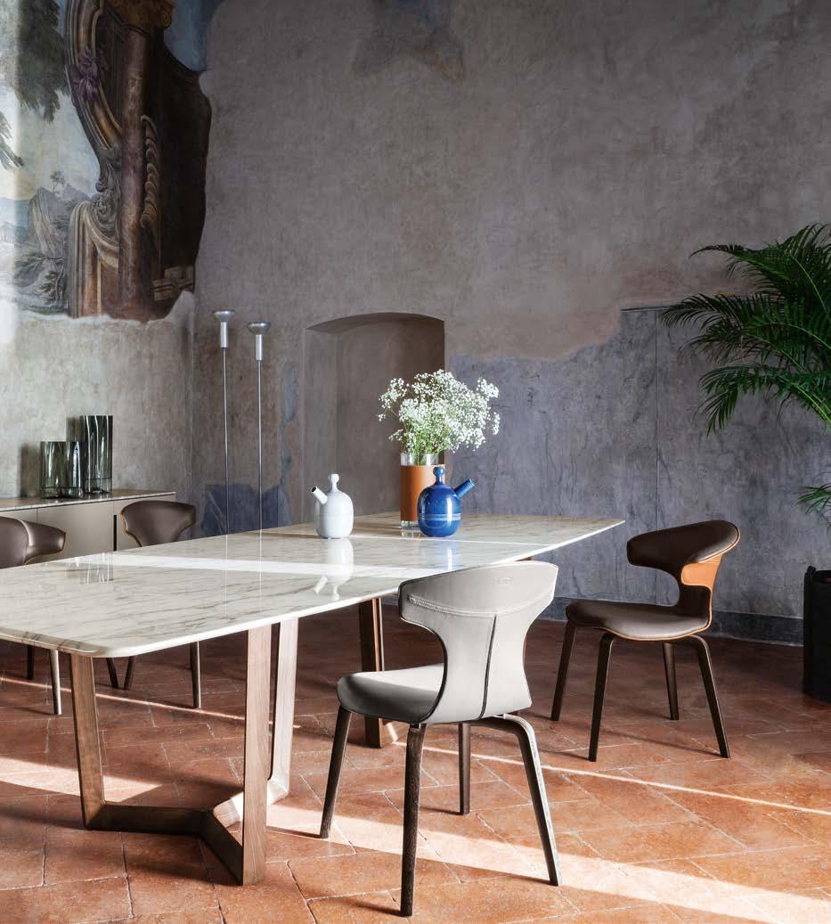 Poltrona Frau in fact aims not only to design and produce furniture, but also to create harmony be tween people, spaces and things. An intimate concordance which ac companies us without ever infring ing on our gaze, a sort of common emotive and aesthetic thread that includes and accommodates differ ent spaces and states of mind with the same subtle, elegant sensibility.