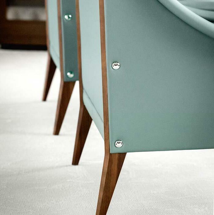 ↗ Eosonno, Pelle Frau® SC 173 Glauco with polished aluminium feet